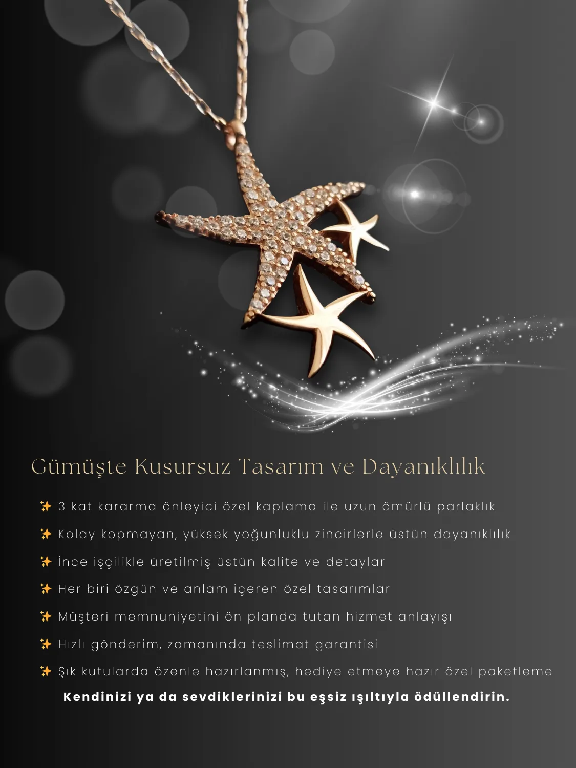 - 925 Ayar Gümüş: Tüm ürünlerimiz, yüksek kalitede ve dayanıklı olan 925 ayar gümüşten üretilmektedir.