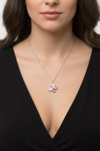Orijinal fiyat: ₺1083.59.₺866.87Şu andaki fiyat: ₺866.87.Pembe Taşlı 925 Ayar Gümüş Kadın Kelebek Kolye