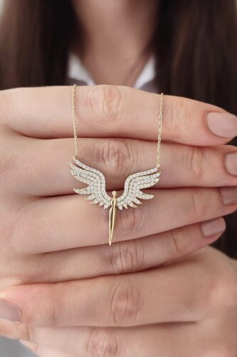 Işıltılı ve zarif… Melek & Peri kolye koleksiyonumuzda koruyucu melek kanadı, “guardian angel” ve masalsı peri motifleri; 925 ayar gümüş ve kararma karşıtı kaplama ile buluşuyor. Minimal çizgilerden zirkon taşlı parlak tasarımlara kadar uzanan modeller; günlük stilinize romantik bir dokunuş katar, hediye seçeneklerinde de anlamlı bir tercih sunar.