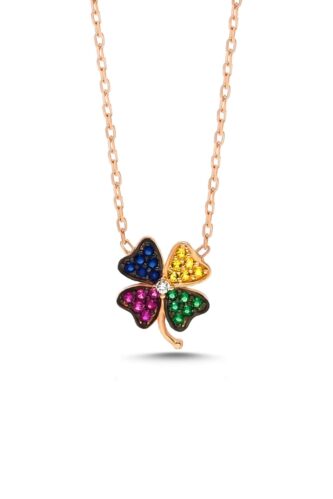 Orijinal fiyat: ₺1044.44.₺835.55Şu andaki fiyat: ₺835.55.Yonca Tasarım Mix Taşlı Rose Kaplama 925 Ayar Gümüş Kadın Kolye