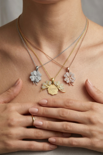 Şansın zarif sembolü… Yonca kolye koleksiyonumuzda dört yapraklı yonca ve shamrock (üç yaprak) motifleri; 925 ayar gümüş, rodyum/altın/rose kaplama ve yüksek parlaklıklı zirkon taşlarla buluşuyor. Hafif yapısı ve 40–45 cm ayarlanabilir zinciri sayesinde günlük kombinlerden özel anlara kadar her stile uyum sağlar. Şık ve anlamlı bir hediye arayanlar için de zamansız bir seçenektir.