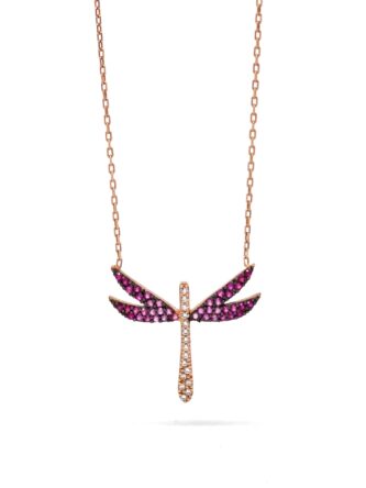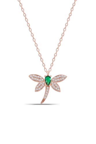 Orijinal fiyat: ₺1429.41.₺1143.53Şu andaki fiyat: ₺1143.53.Kadın Pembe Taşlı Yusufçuk 925 Ayar Gümüş Kolye