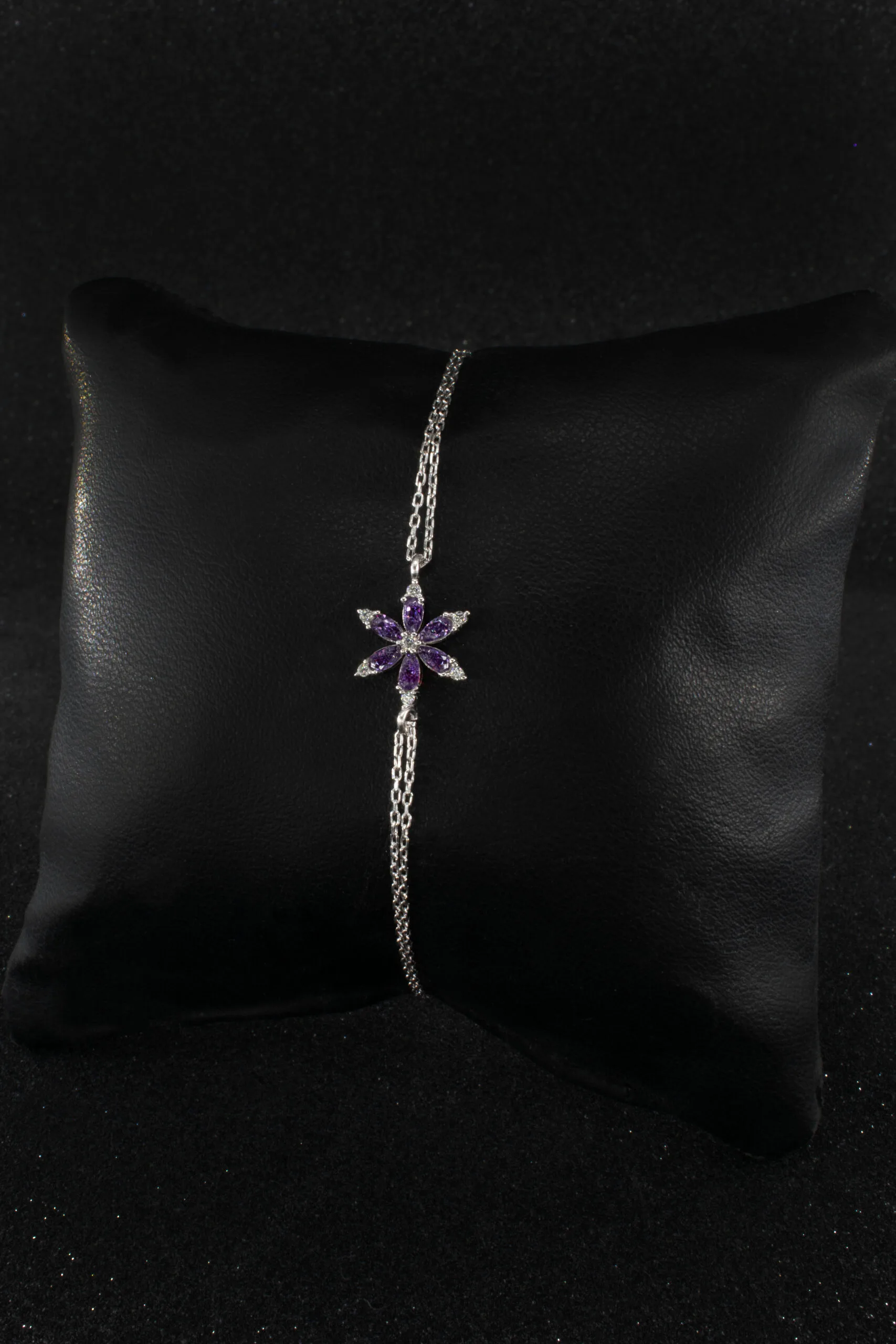 Ametist Mor Lotus Çiçeği Minimal 925 Ayar Gümüş Kadın Bileklik