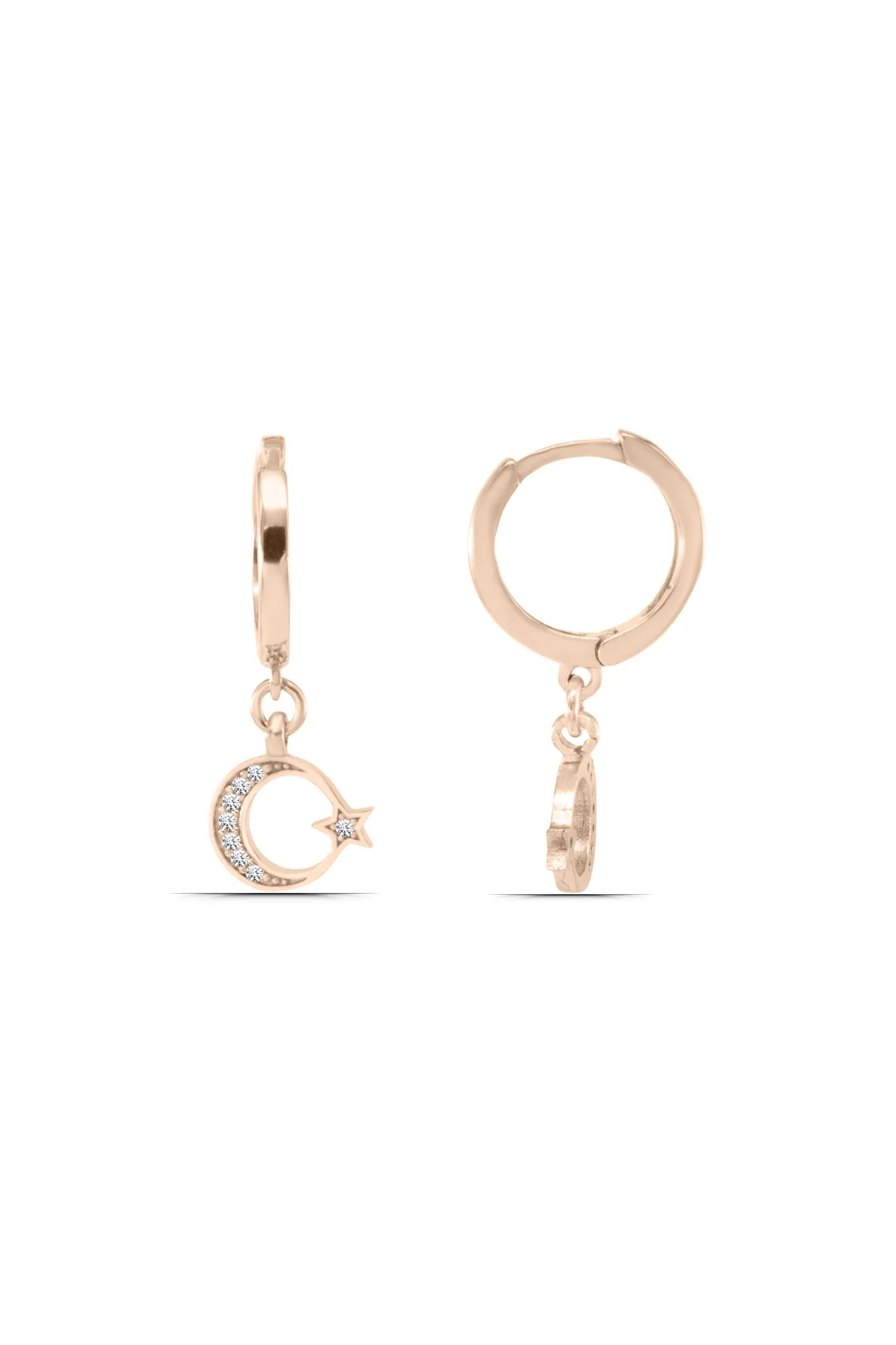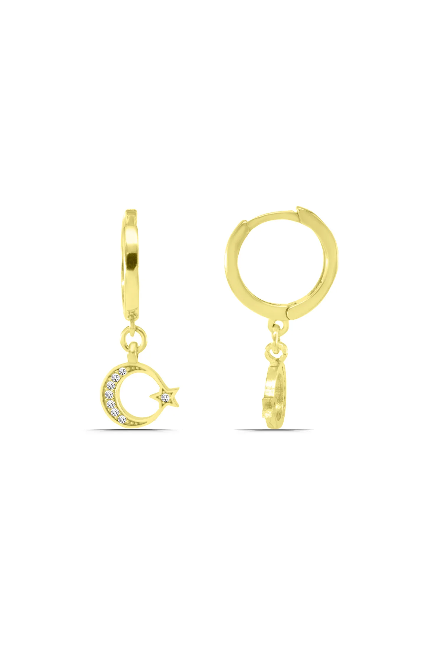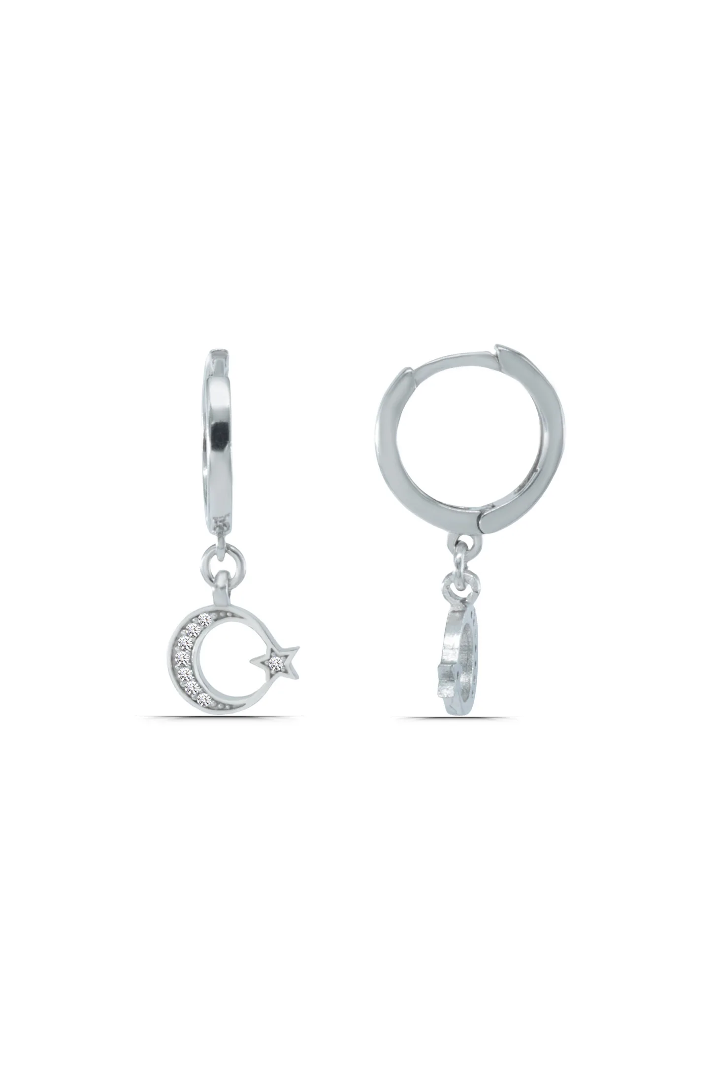 Ay Yıldız Sallantılı 925 Ayar Gümüş Kadın Küpe