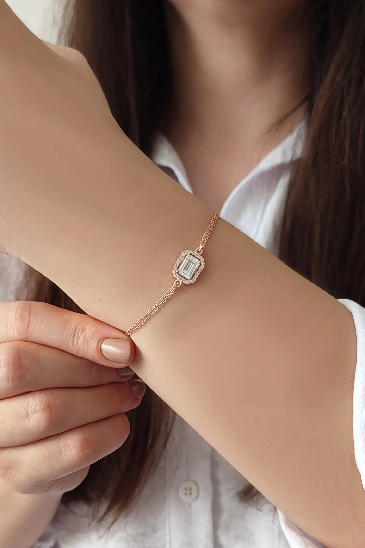 - Baget Taş Detaylı 925 Ayar Gümüş Kadın Ayarlanabilir Bileklik