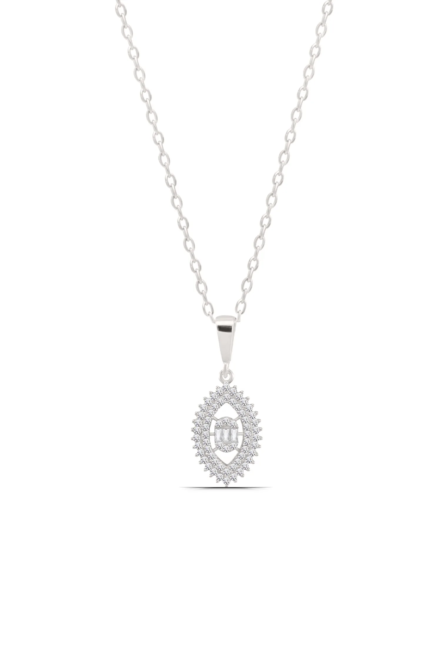 Baget ve Zirkon Taşlı 925 Ayar Gümüş Kadın Kolye