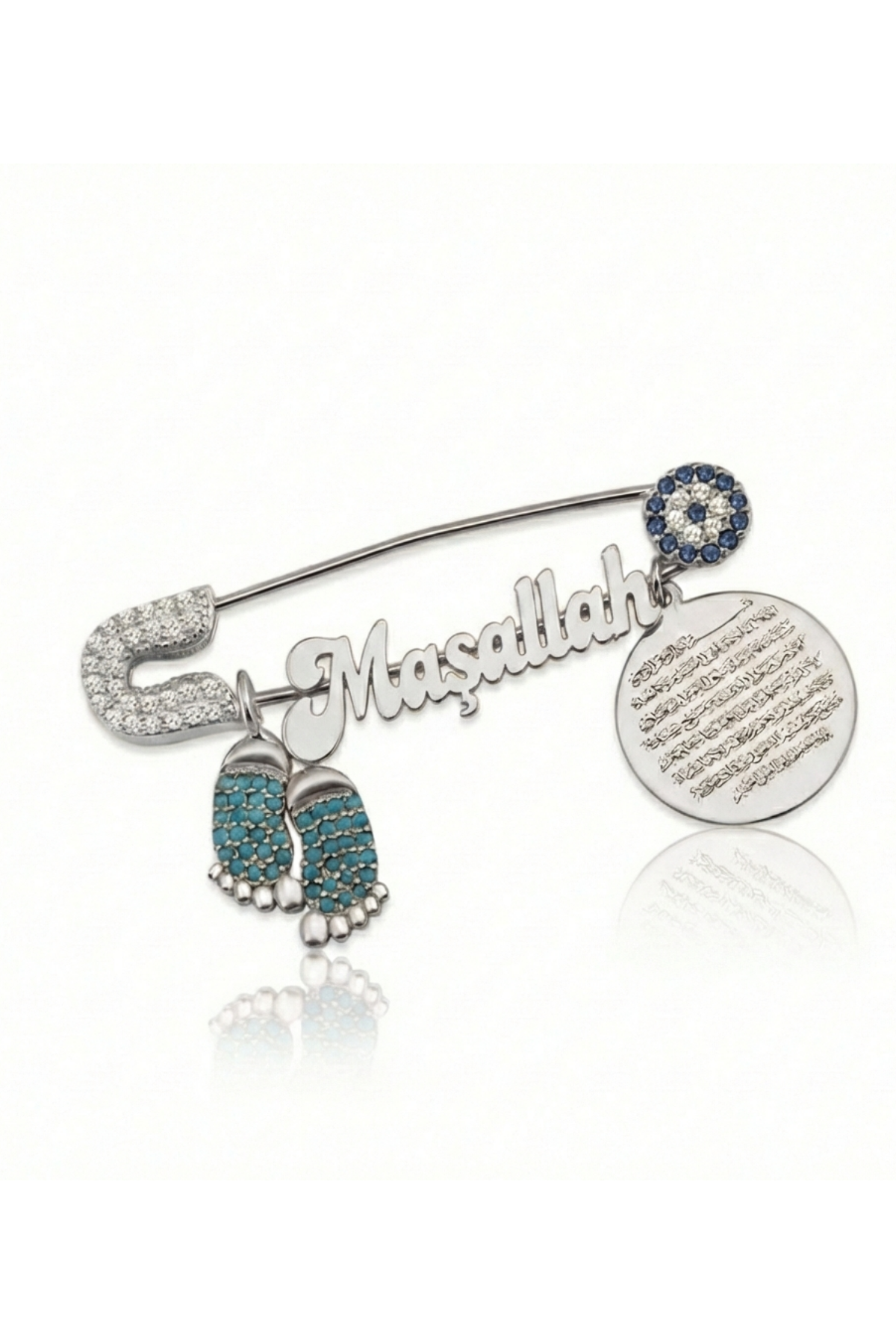 Bebek Yaka İğnesi Maşallah ve Nazar Ayeti Yazılı 925 Ayar Gümüş Antialerjik