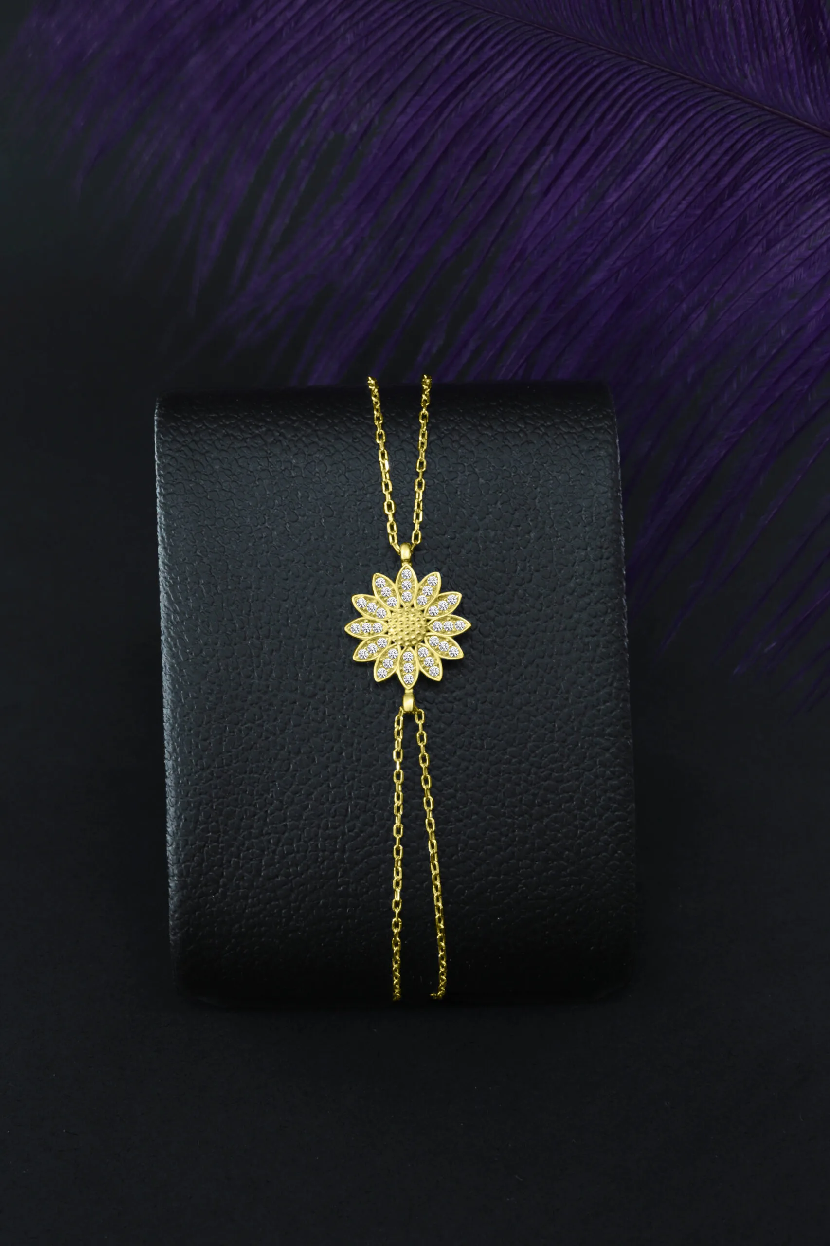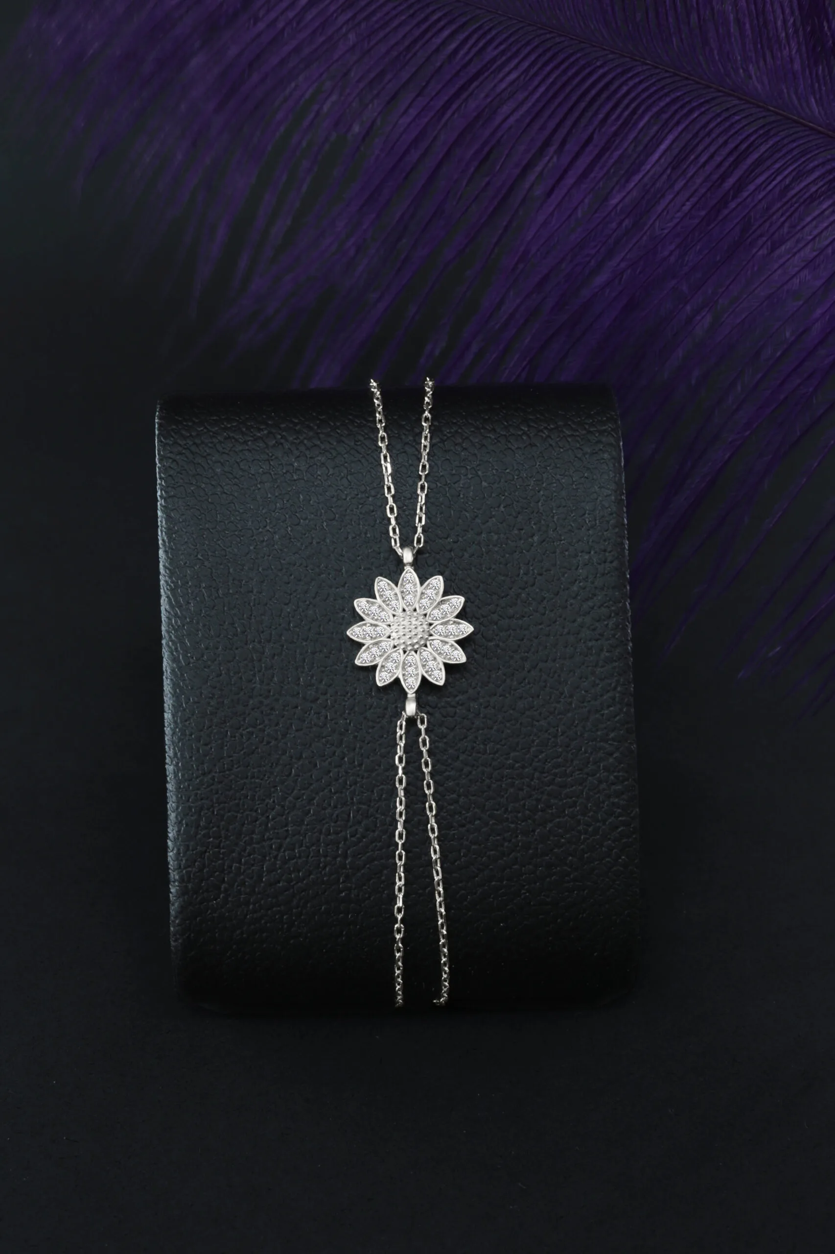 Çiçek Tasarım 925 Ayar Gümüş Kadın Ayarlanabilir Bileklik