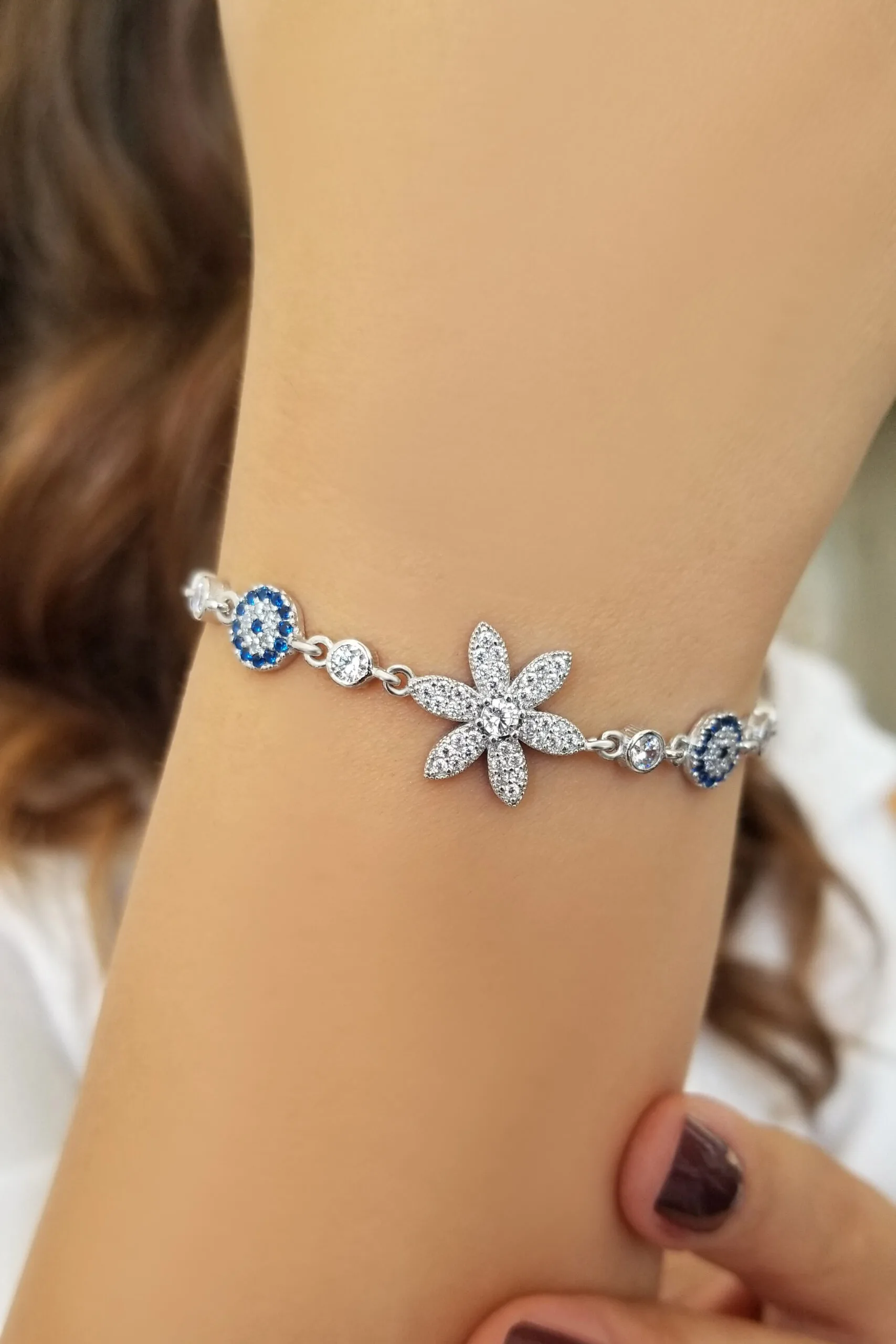 Çiçek ve Nazar 925 Ayar Gümüş Asansör Bileklik
