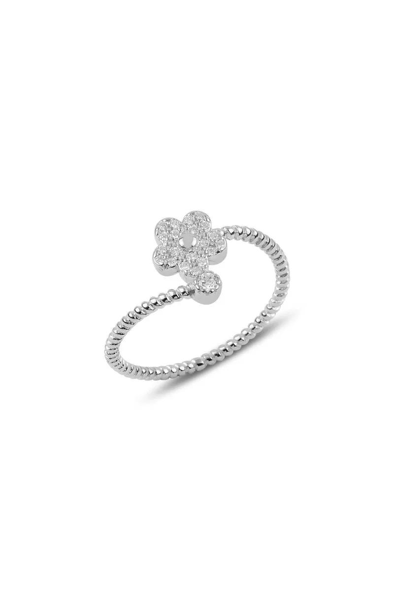 Çiçek Zirkon Taşlı 925 Ayar Gümüş Kadın Ayarlanabilir Yüzük