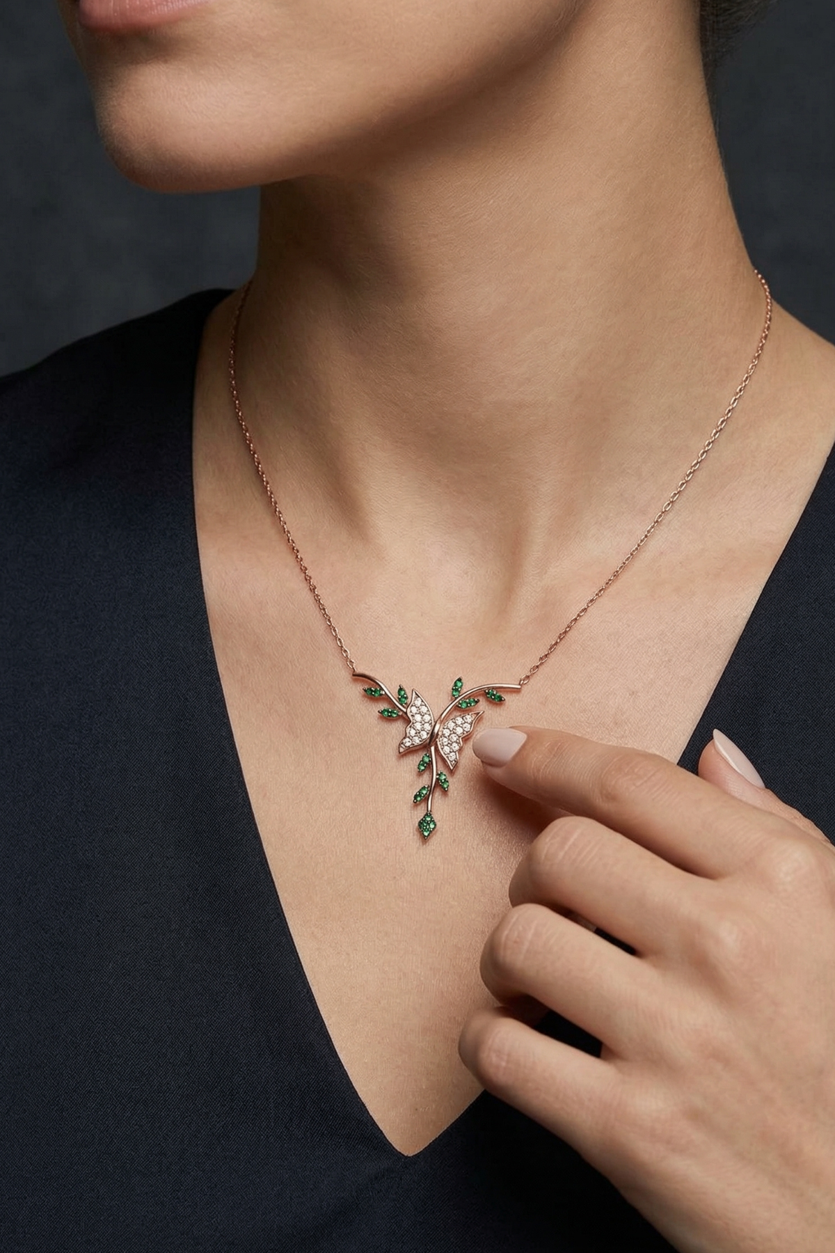 - Dala Konan Kelebek Temalı 925 Ayar Gümüş Kadın Kolye