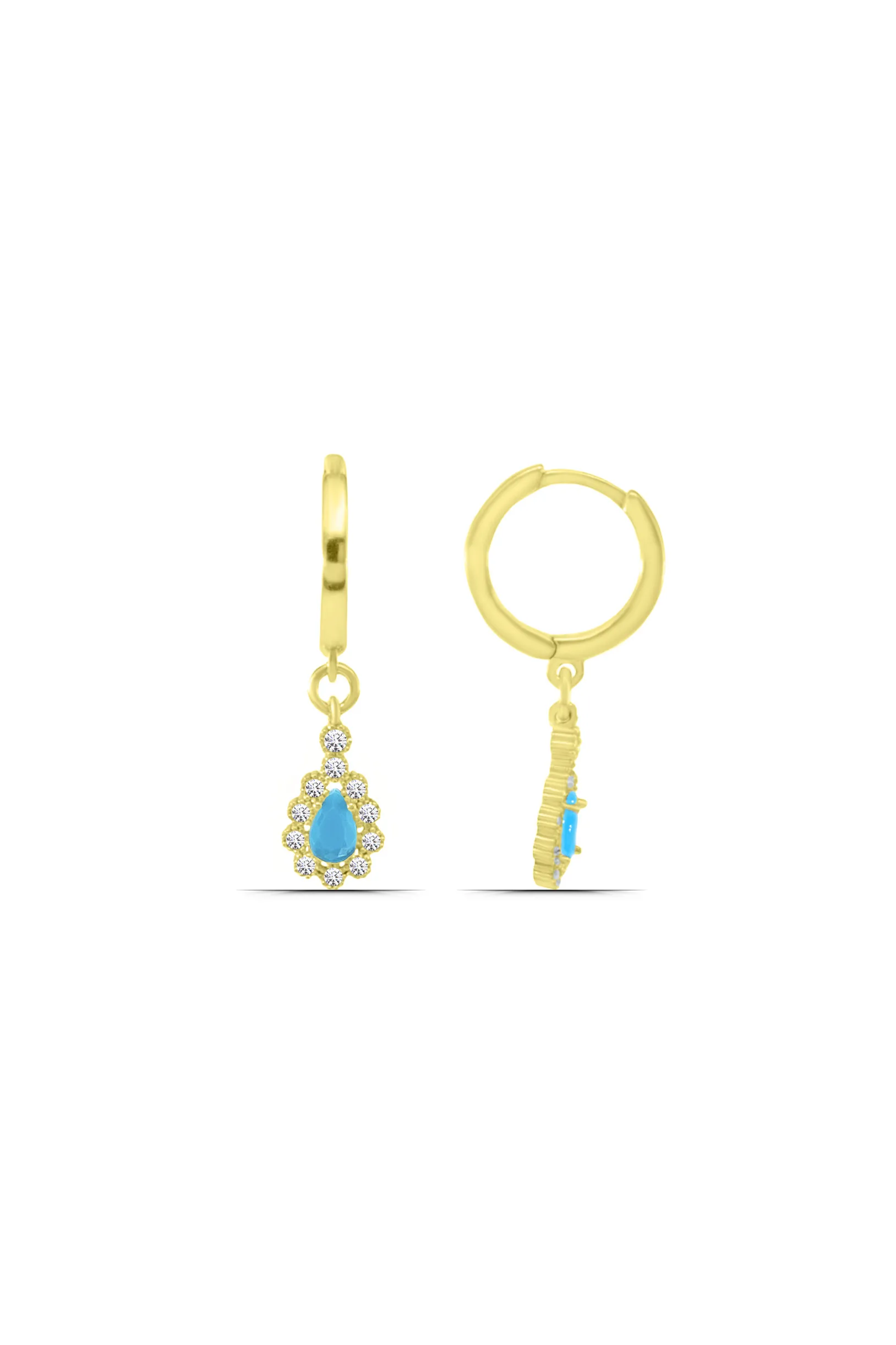 Damla Turkuaz Montür Taşlı 925 Ayar Gümüş Sallantılı Kadın Küpe