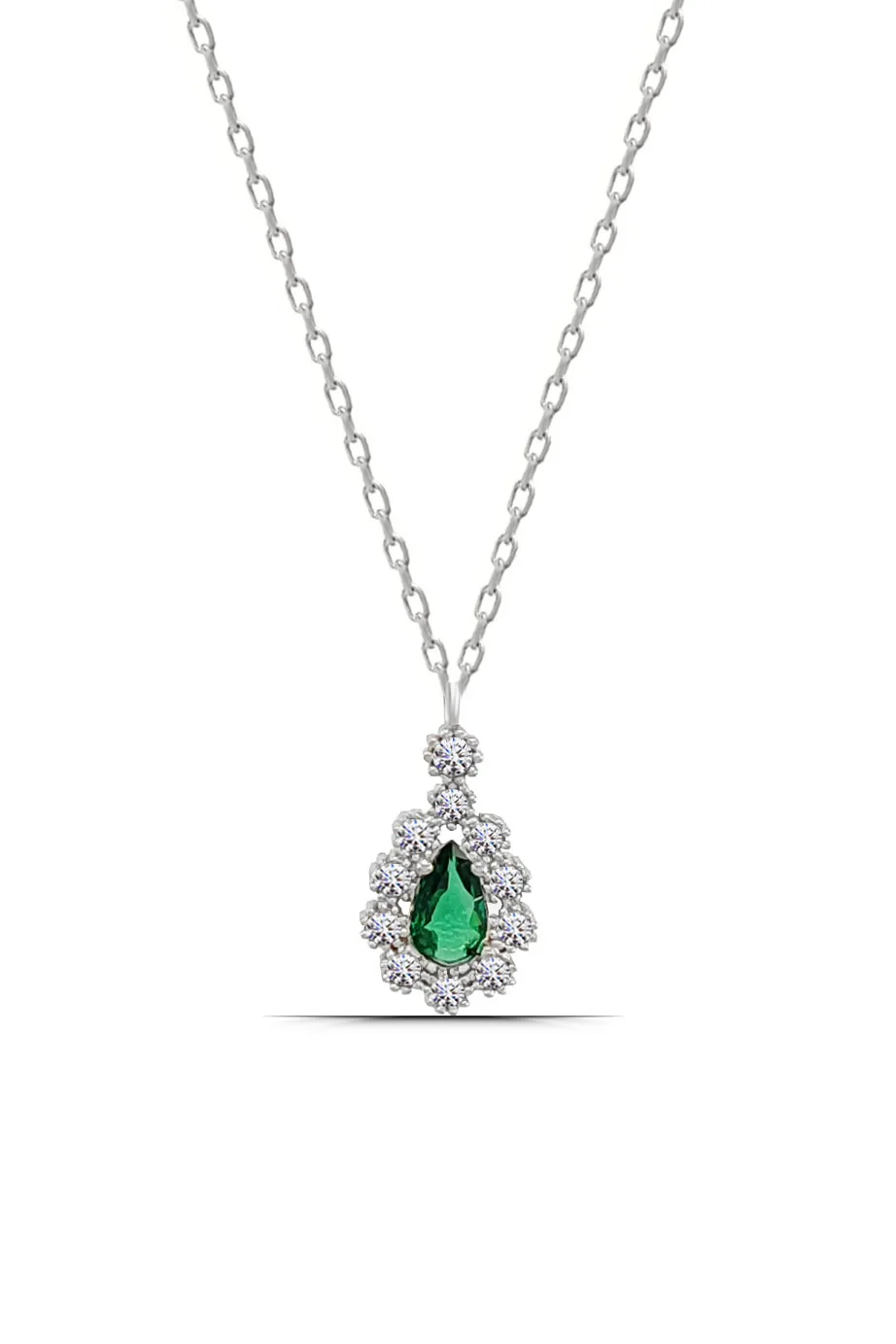 Damla Yeşil Taşlı 925 Ayar Gümüş Minimal Kadın Kolye