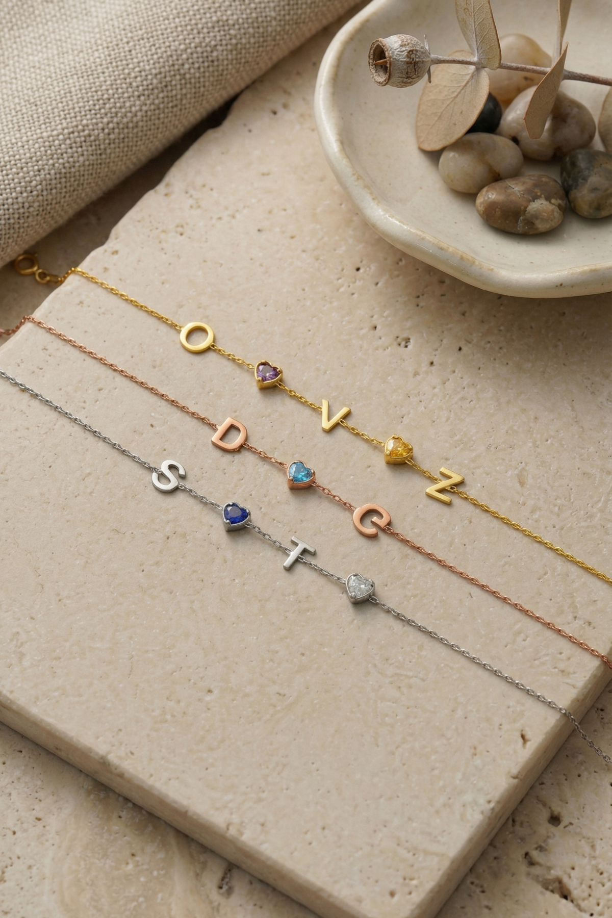 Doğum taşları kişisel anlamı ve enerjiyi simgelerken, seçilen baş harf charm’ları bilekliğe benzersiz bir kimlik katar ve onu sadece bir takıdan fazlası haline getirir.