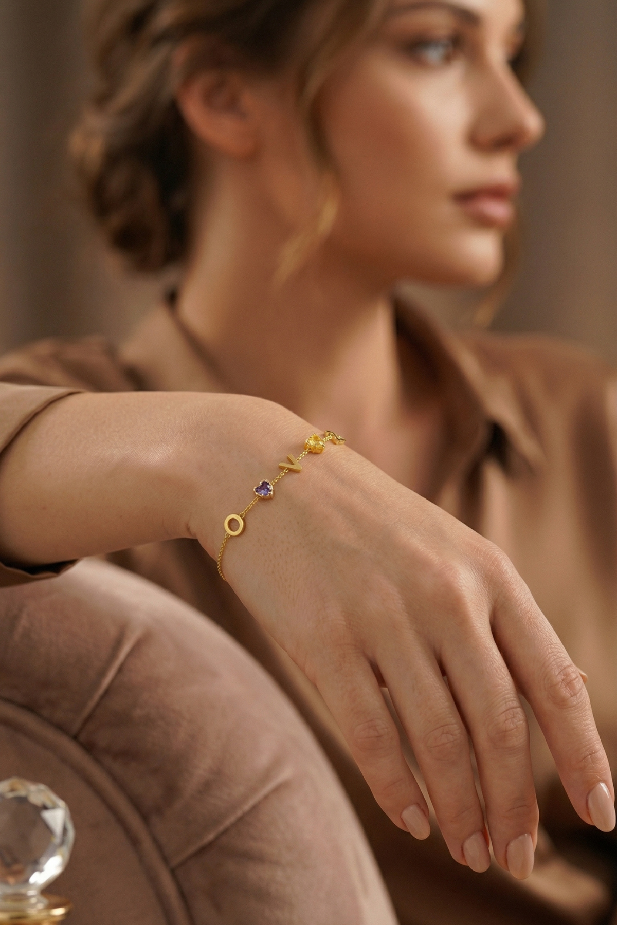 Doğum Taşı Harf Bilekliği, anlamlı ve zarif bir kişiye özel takı parçası sunmak için tasarlanmıştır. Bu bileklik, baş harf charm’ları ve doğum taşı charm’larını bir araya getirmenize olanak tanır ve tamamen kişiye özel bir tasarım oluşturur.