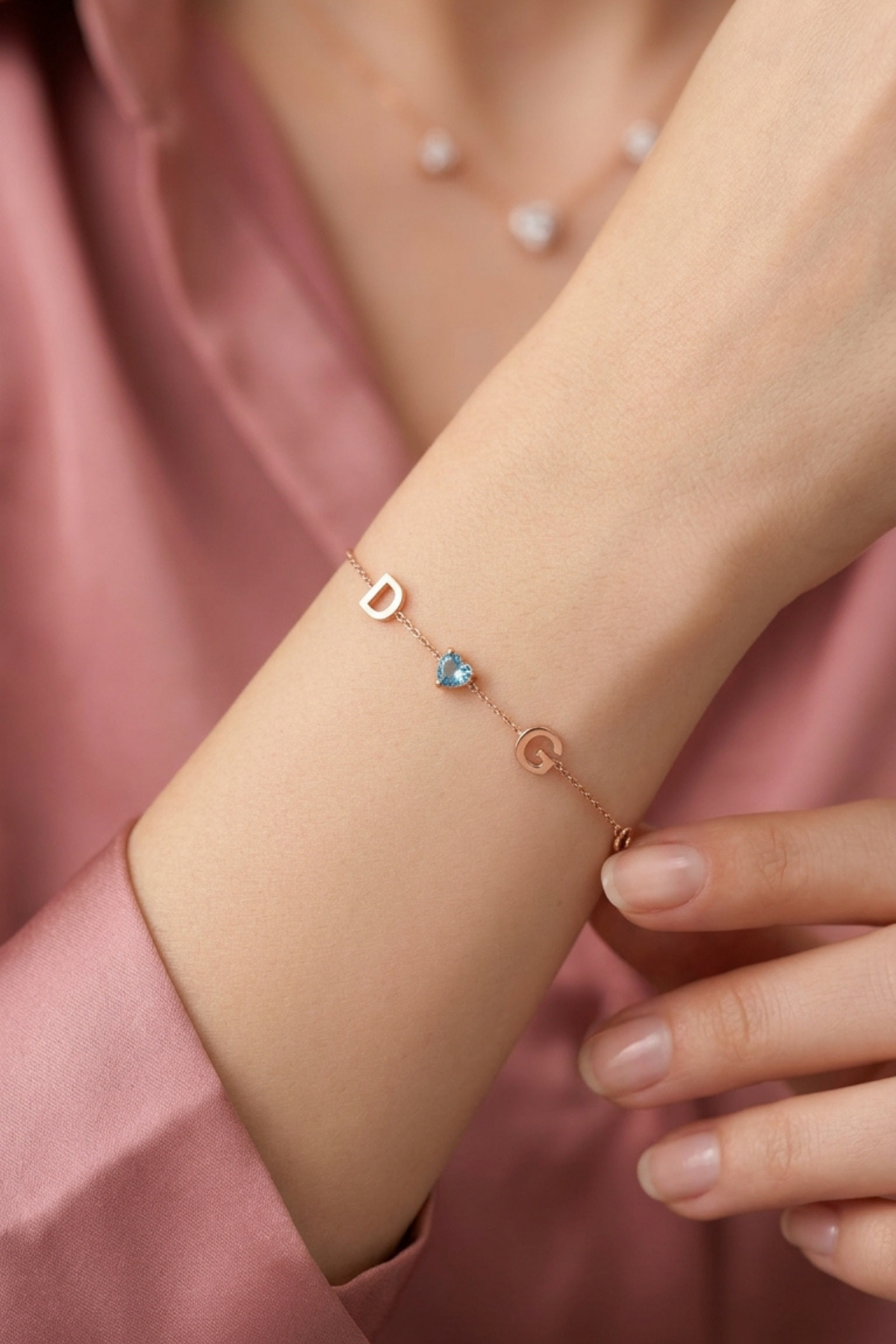 • Tasarım: Doğum Taşı ve Harf Charm Bilekliği