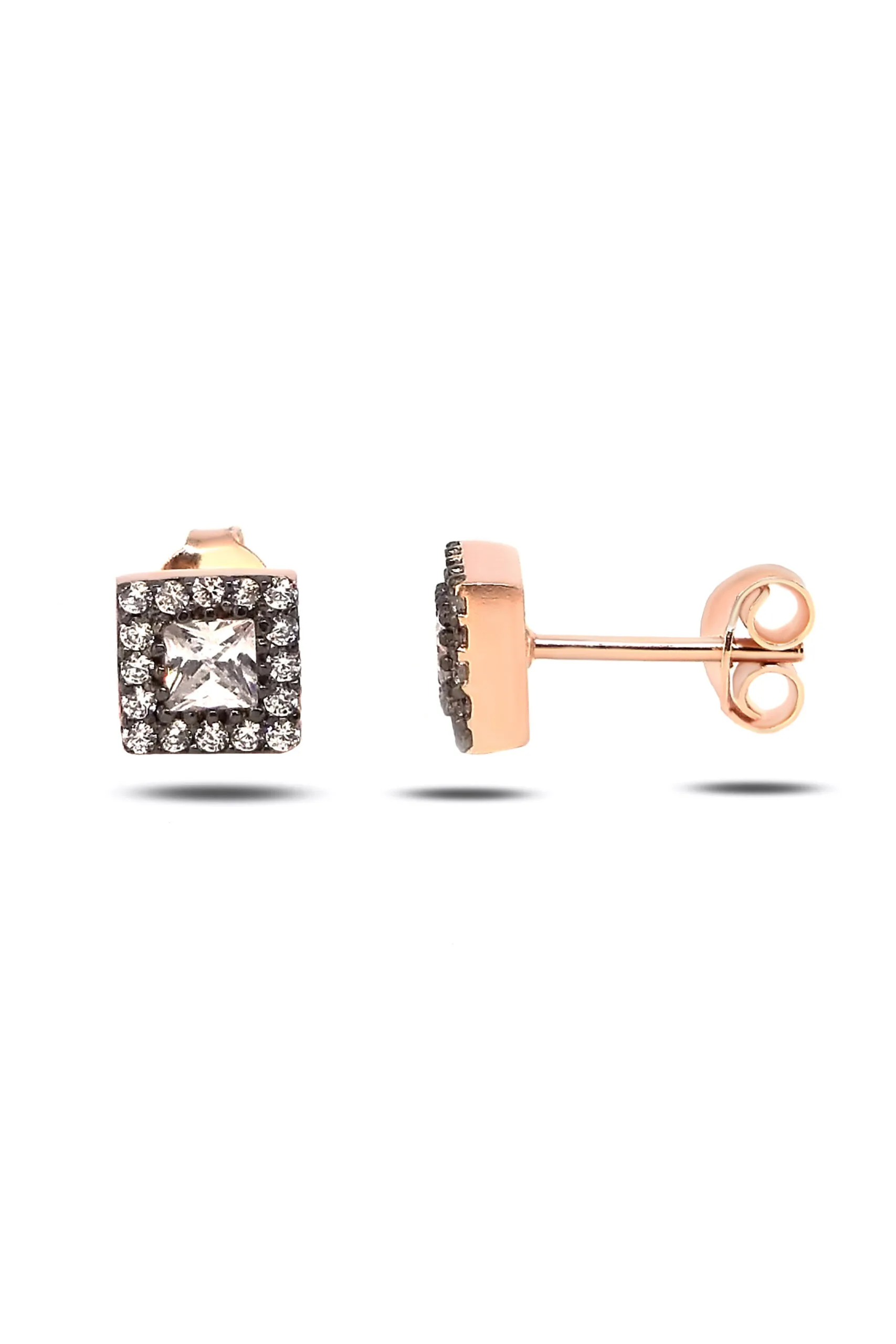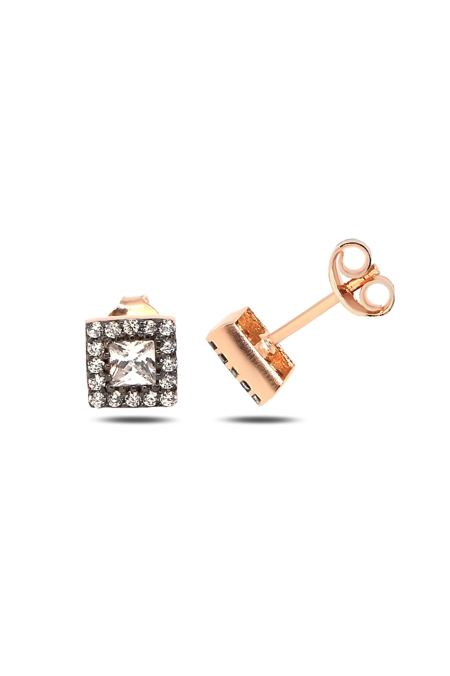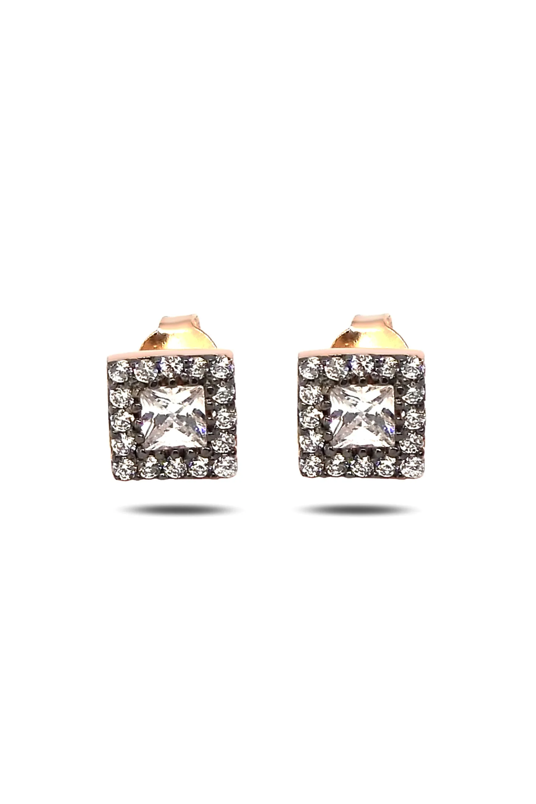 - Elmas Montürlü Kare Kadın Gümüş Küpe