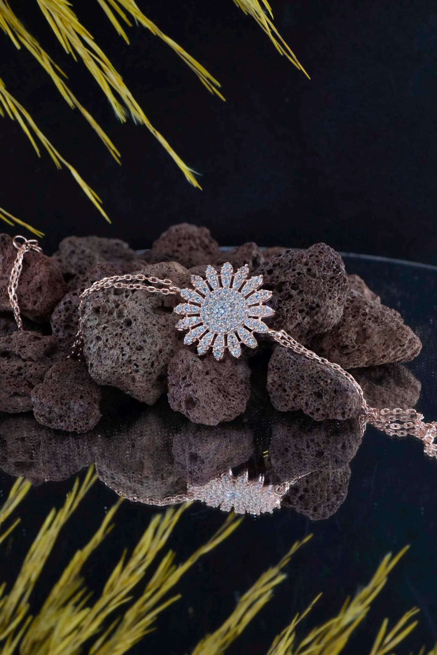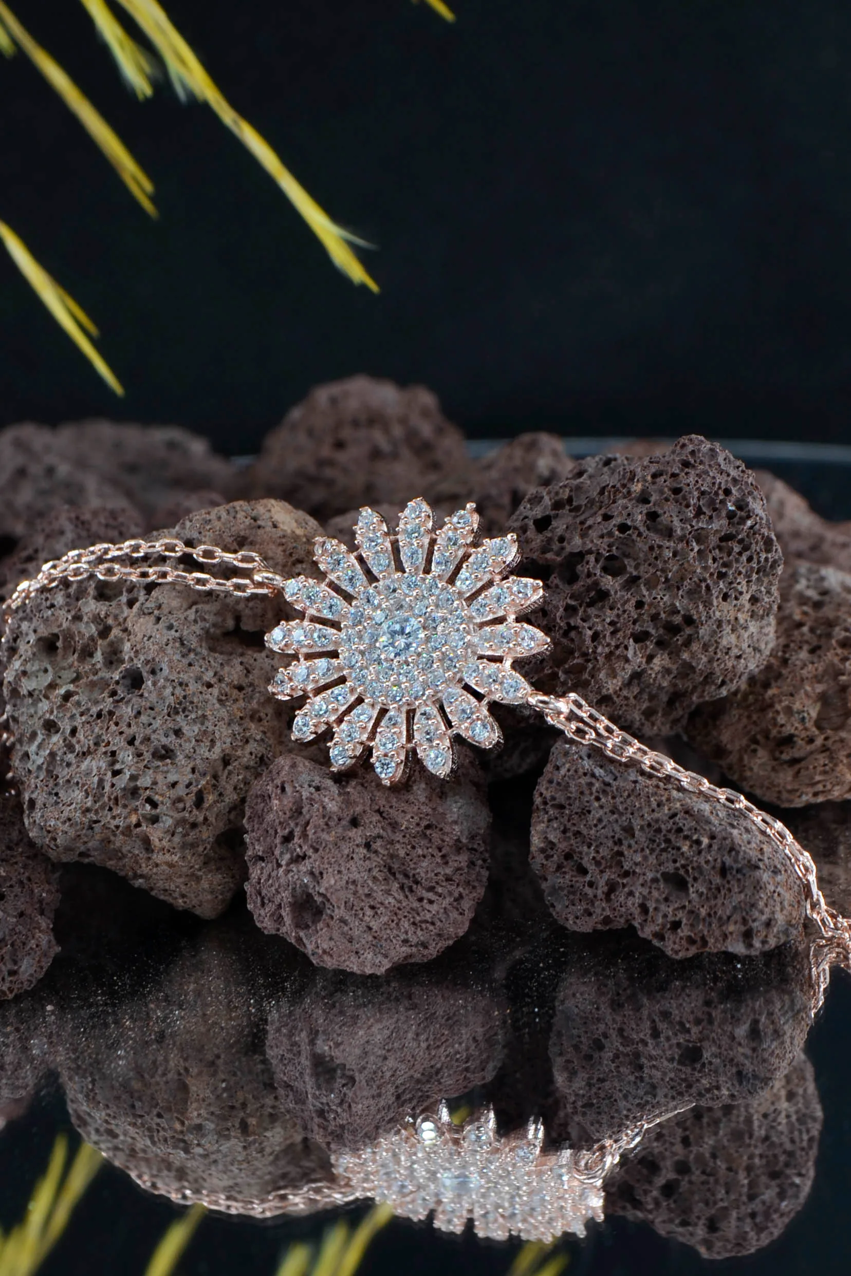 Güneş Tasarım Kadın 925 Ayar Gümüş Kadın Rose Ayarlanabilir Bileklik