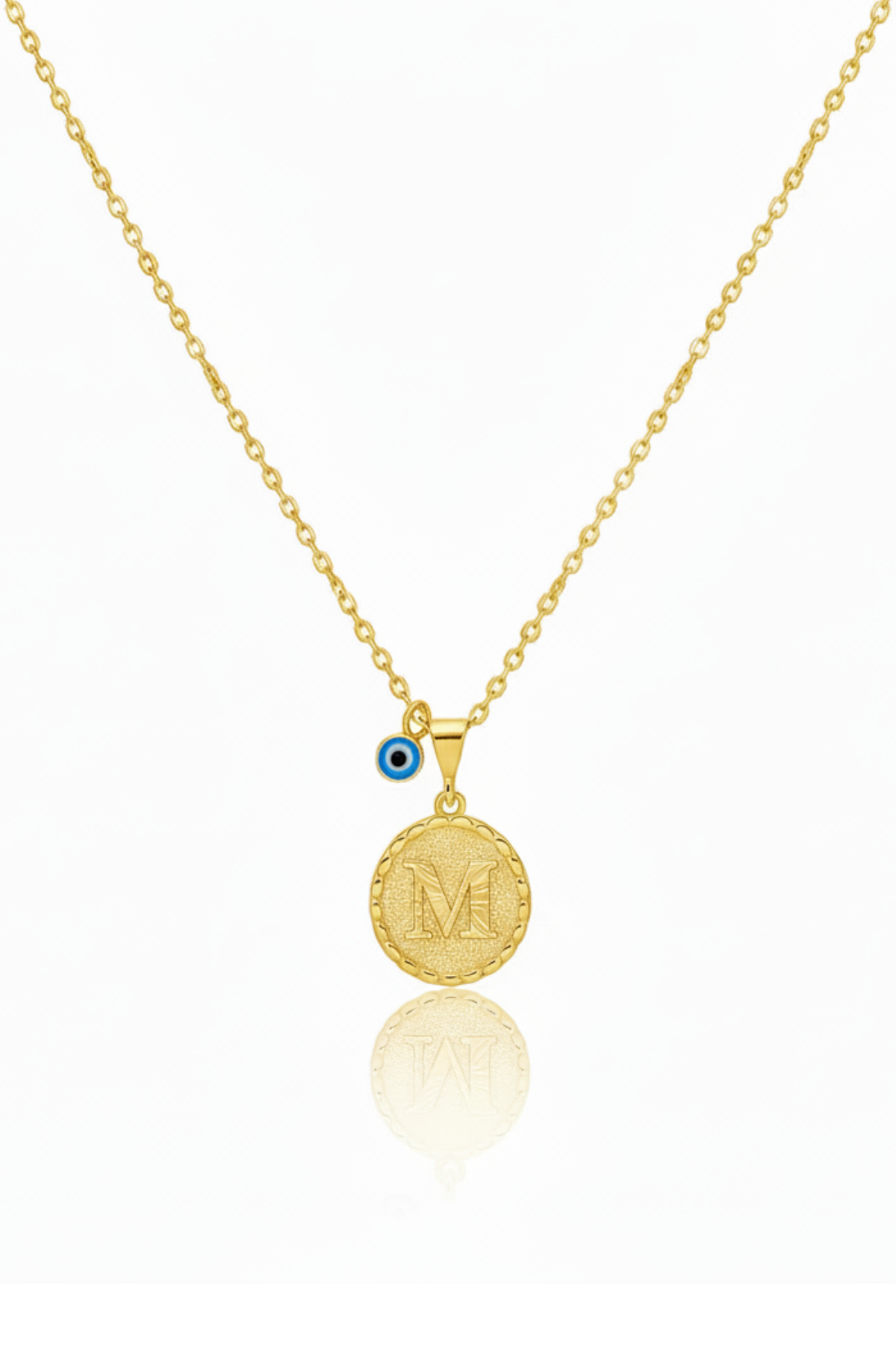 Kolyenin yanında yer alan nazar boncuğu detayı ise tasarıma hem modern bir dokunuş hem de zarif bir sembol katıyor.