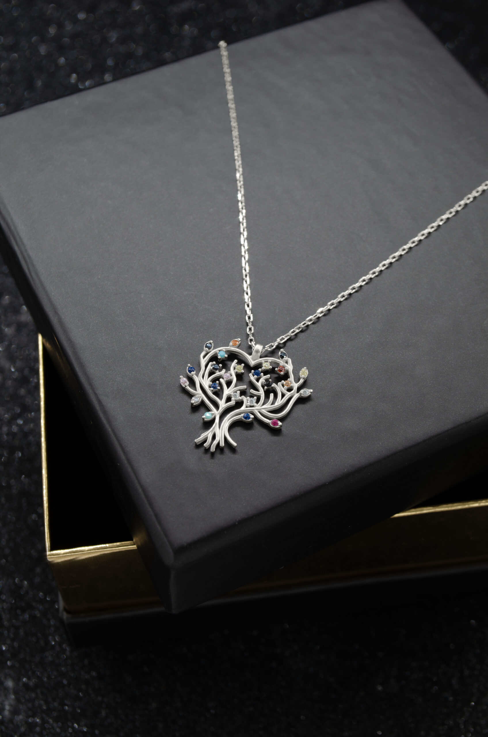 Hayat Ağacı Renkli Zirkon Taşlı 925 Ayar Gümüş Kadın Kolye