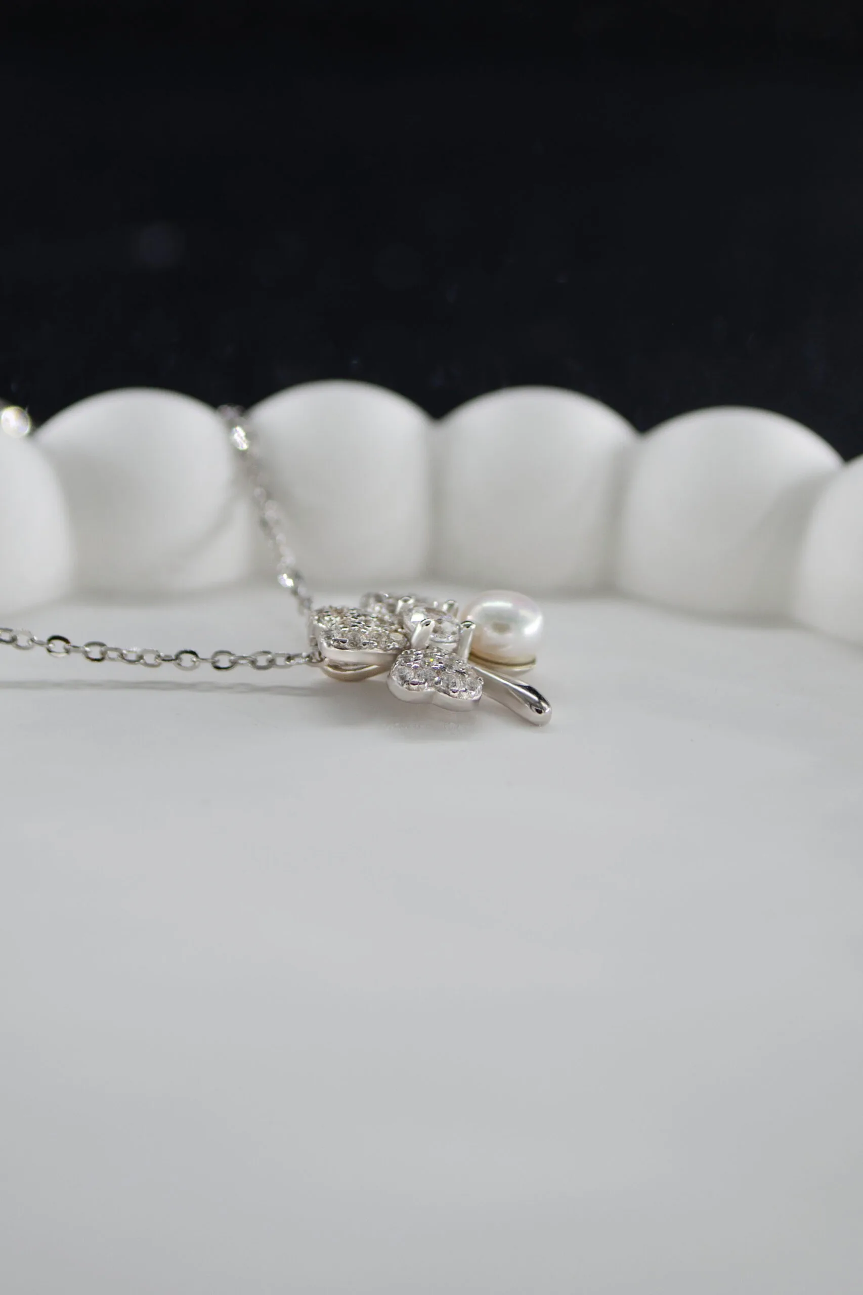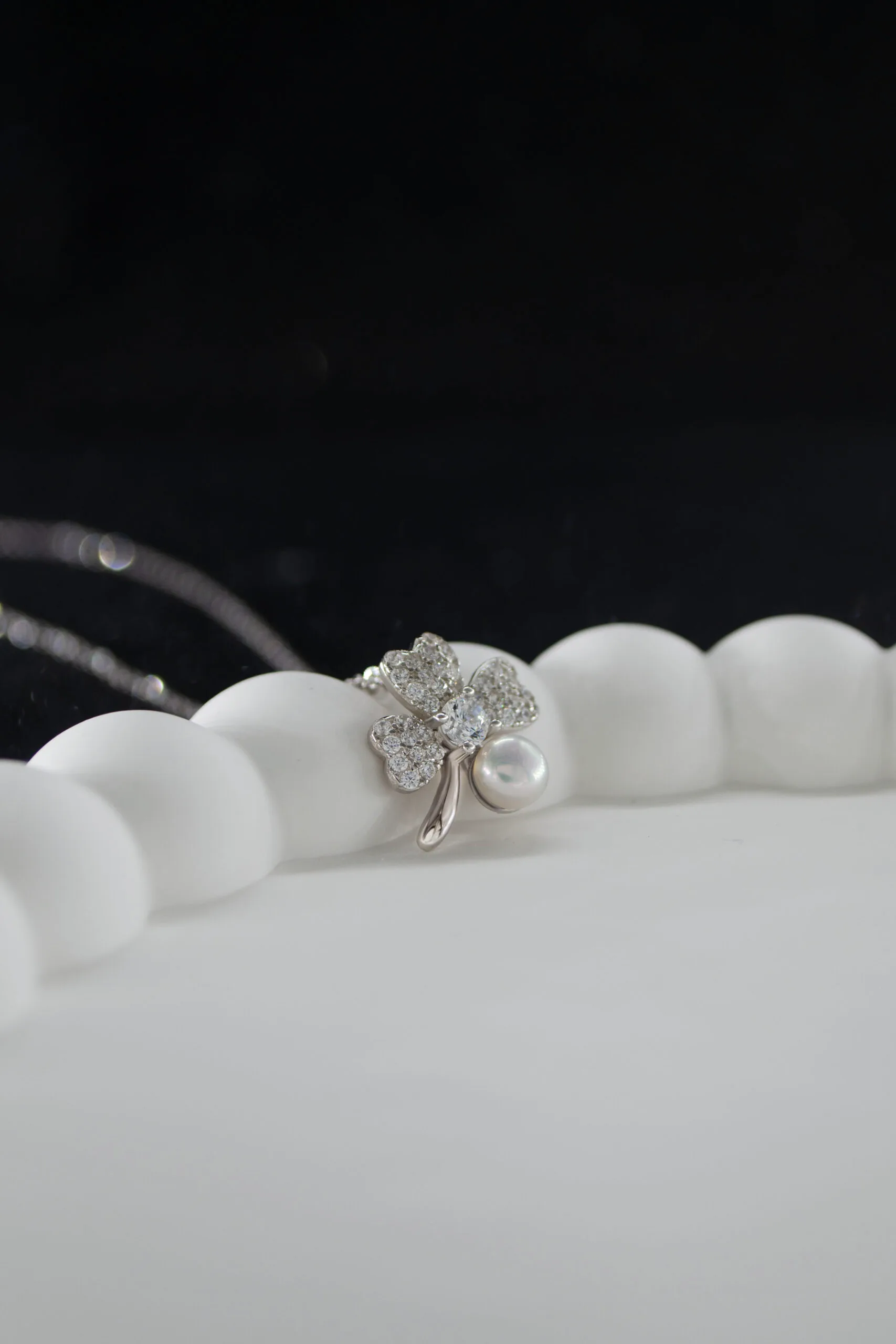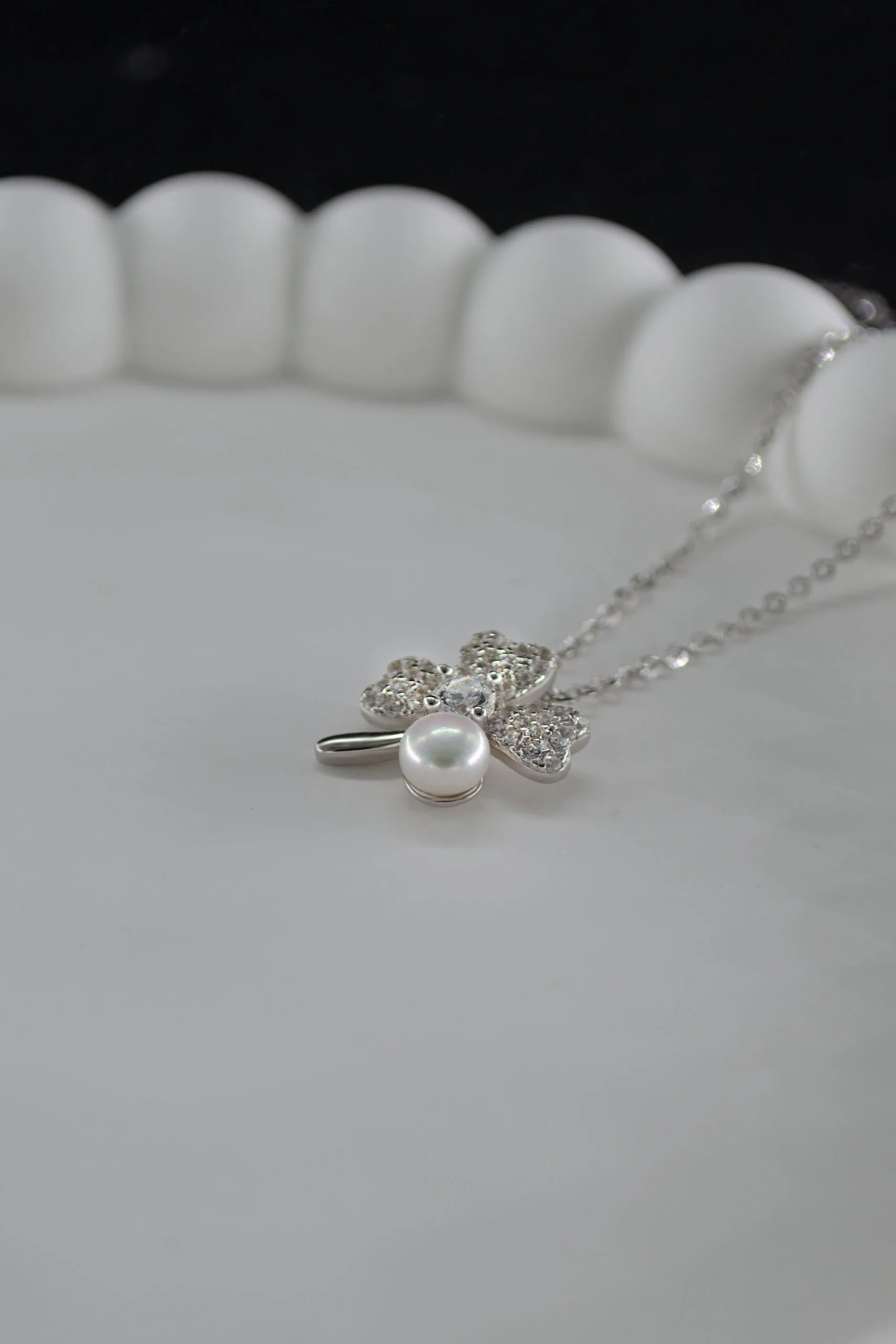 İnci Detaylı Dört Yapraklı Yonca 925 Ayar Gümüş Kadın Kolye