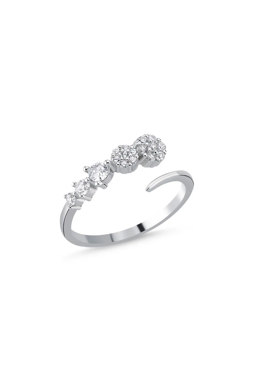 Işıltılı Sıra Taş 925 Ayar Gümüş Kadın Ayarlanabilir Yüzük