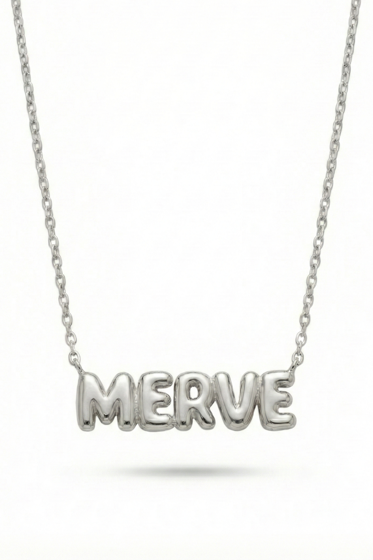 İsimli Bombeli Kişiye Özel 925 Ayar Gümüş Kadın Kolye, üç boyutlu bombeli harf formu sayesinde ışığı her açıdan yansıtan, dikkat çekici ve premium bir tasarıma sahiptir. Yumuşak geçişlere sahip harf yapısı kolyeye dolgun ve şık bir görünüm kazandırırken, ince zinciriyle birlikte boyunda zarif bir denge oluşturur.