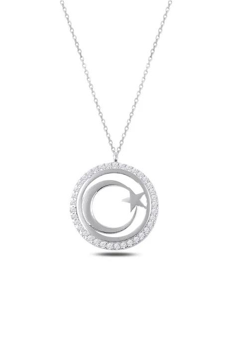 Kadın Ay Yıldız 925 Ayar Gümüş Kolye