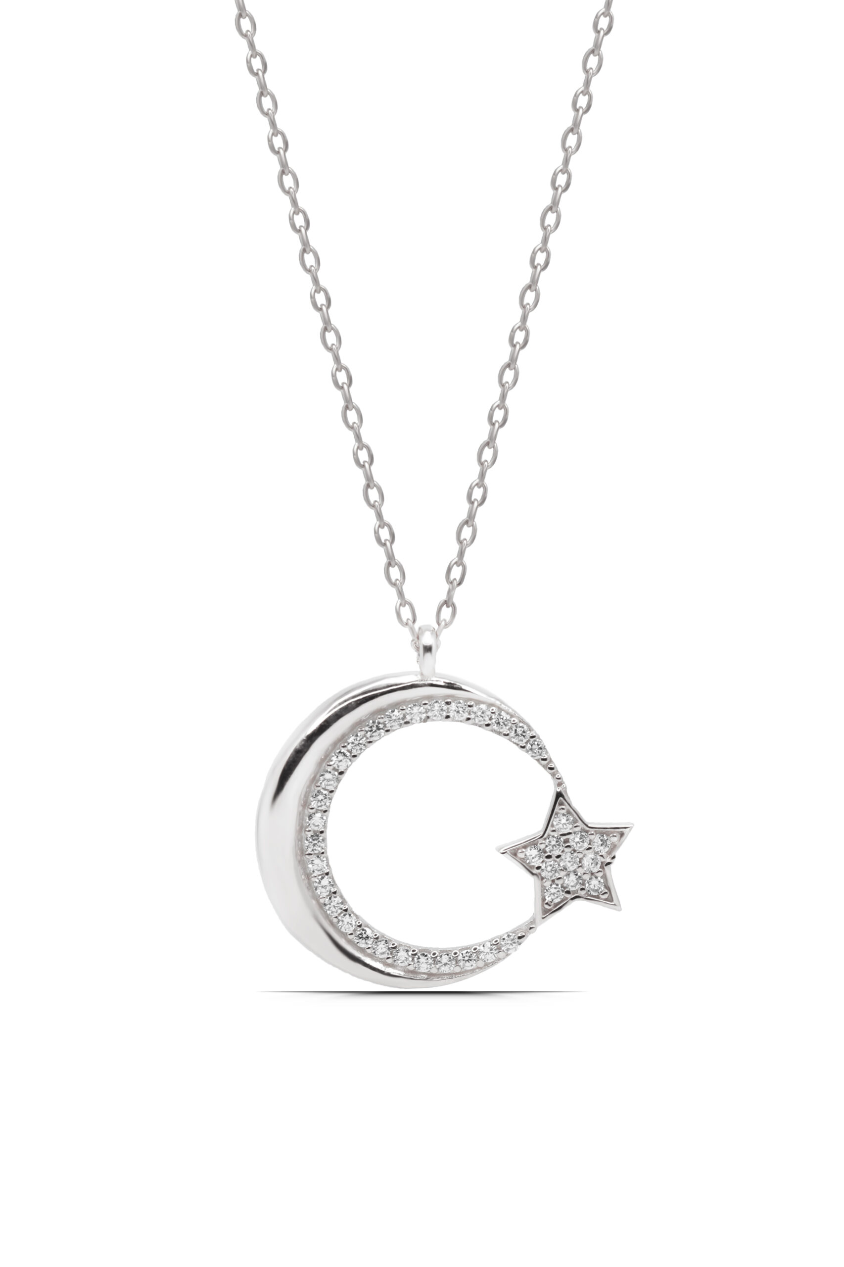 Kadın Ay Yıldız Tasarım 925 Ayar Gümüş Kolye