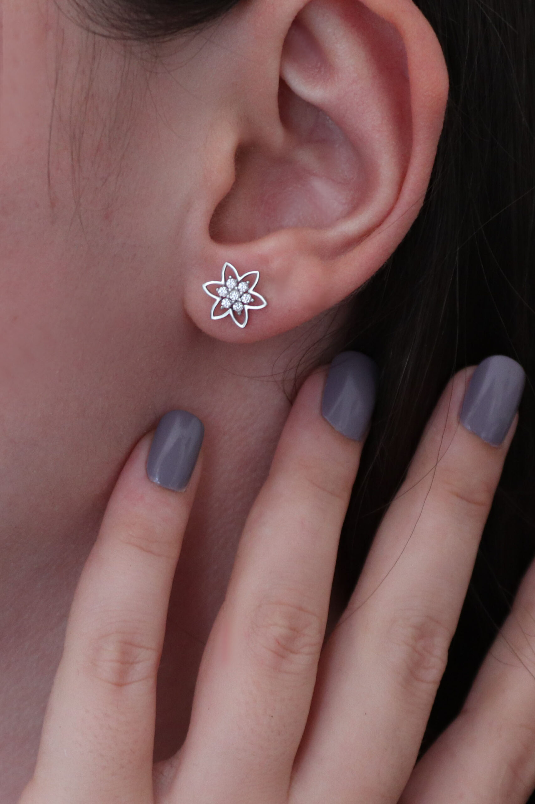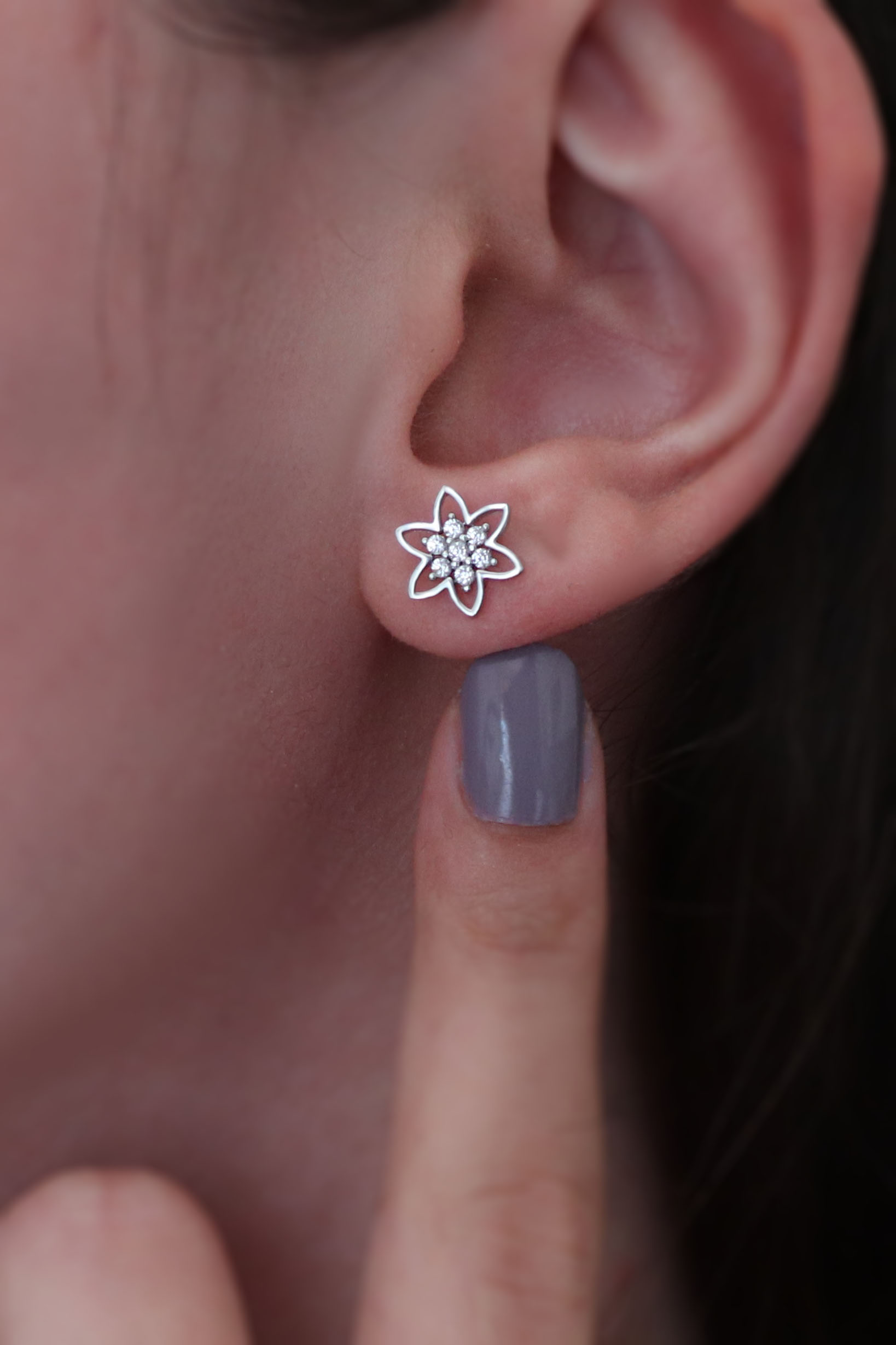 - Kadın Çiçek tasarım 925 ayar Gümüş Küpe