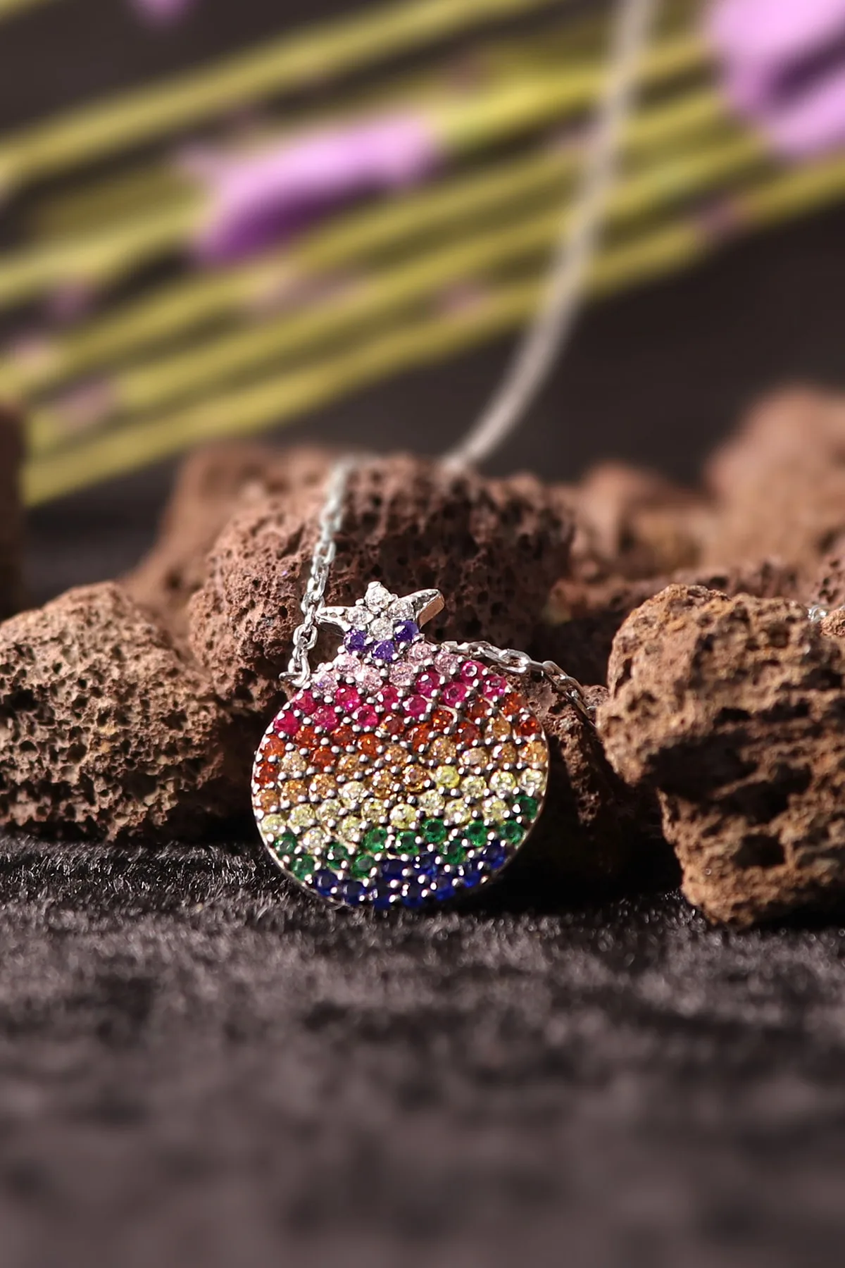 Kadın Karışık Renk Nar Tasarım 925 Ayar Gümüş Kolye