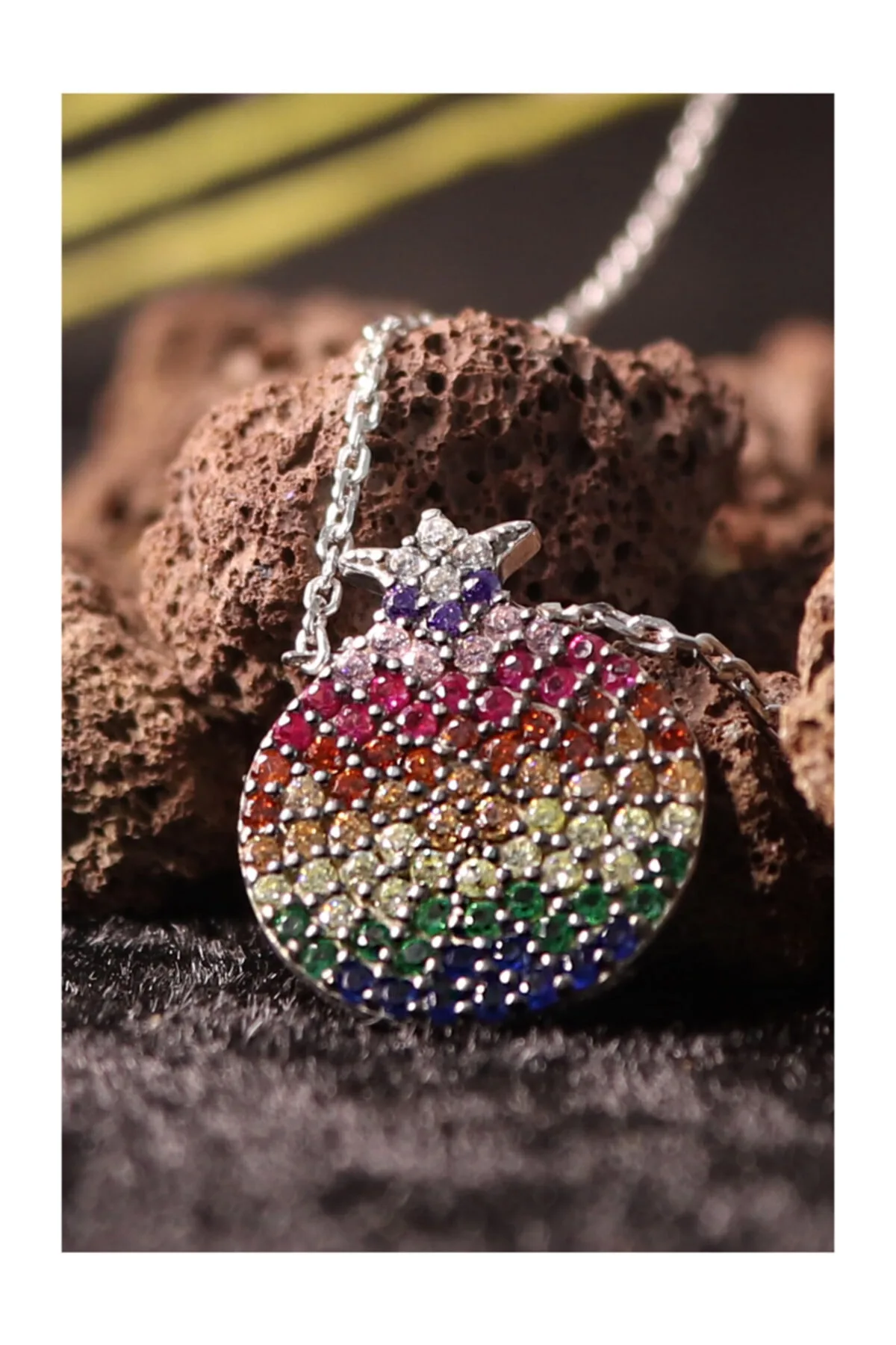 • Karışık Renk Nar Tasarım Kadın Gümüş Kolye