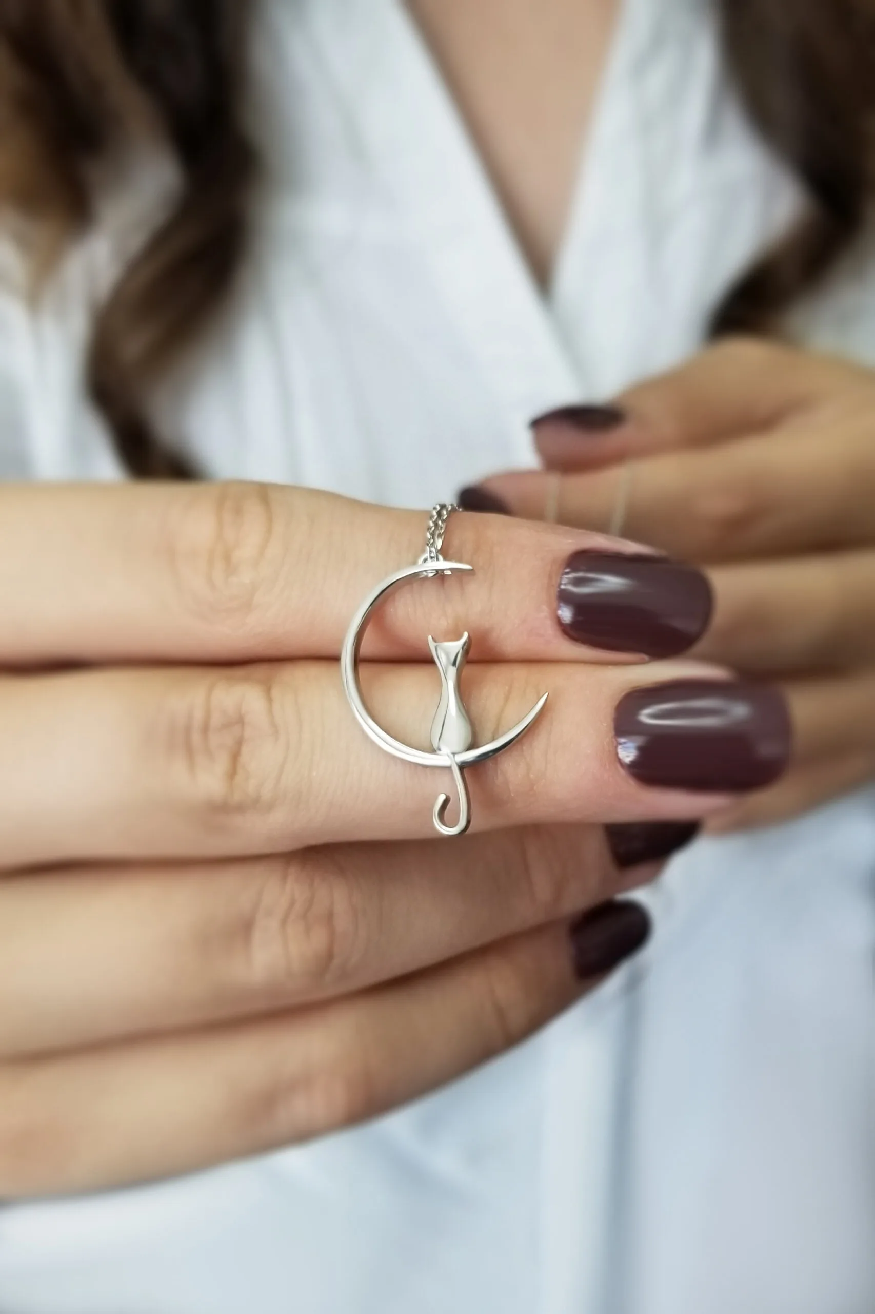 Kadın Kedi ve Hilal Tasarım 925 Ayar Gümüş Kolye