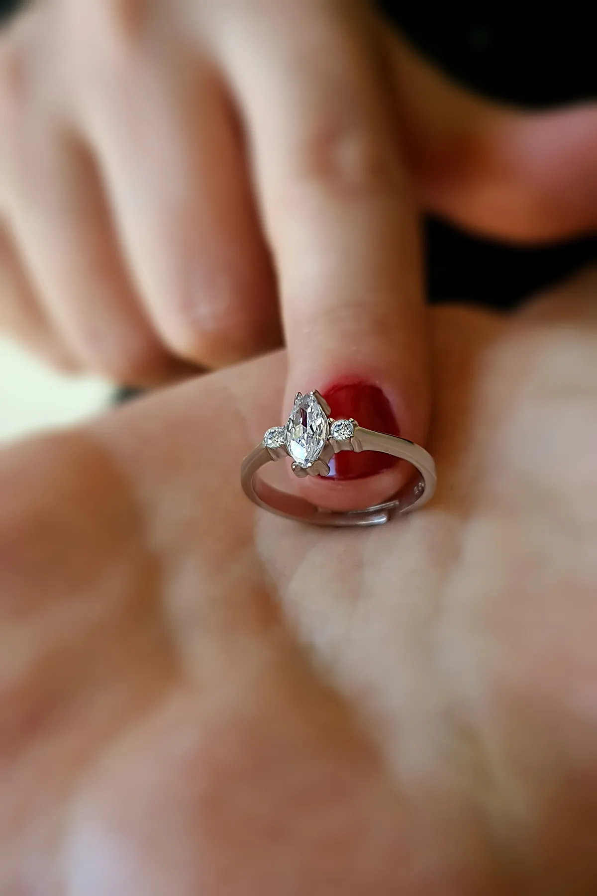 - Kadın Oval Montür Kesim Baget Ayarlanabilir Gümüş Yüzük