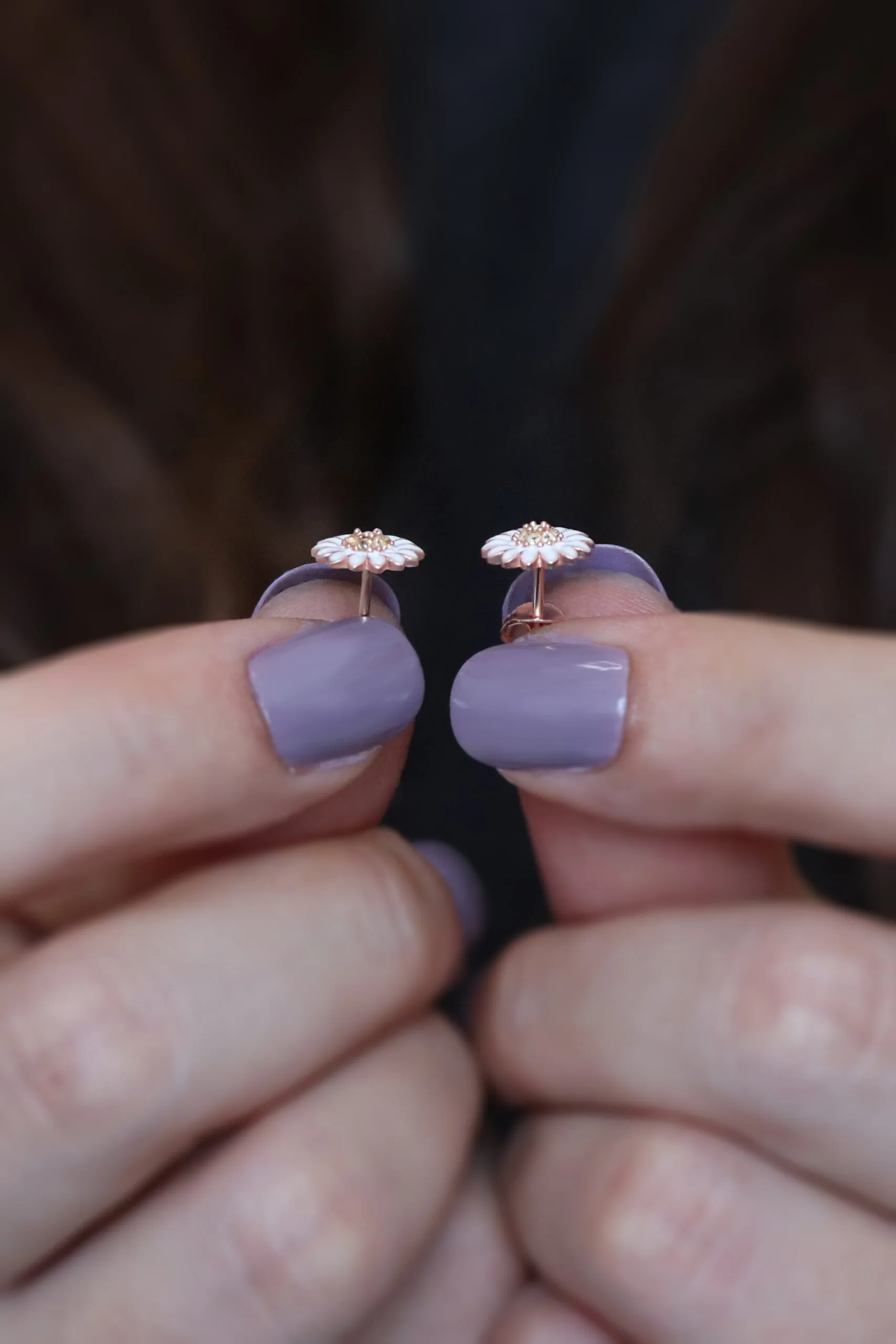 Kadın Papatya Tasarım 925 ayar Gümüş Küpe