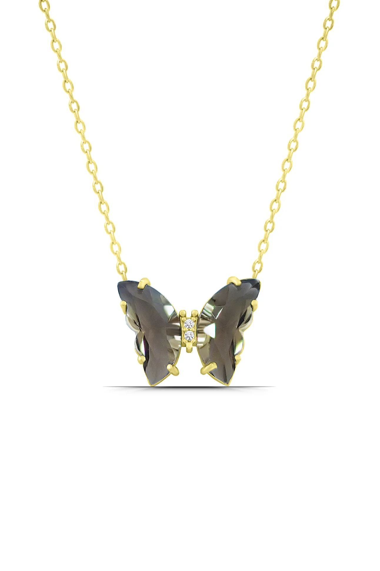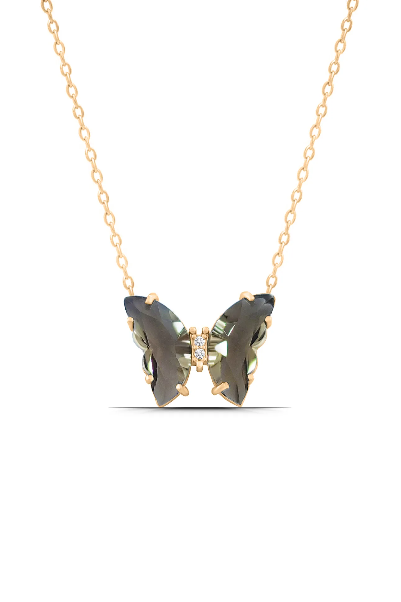 - Kelebek figürü ile tasarlanan bu kolyenin emsalerinden ayrılan en belirgin özelliği her açıdan farklı bir ışıltı ve renkte parlayan özel taşıdır. Kolye tasarlanırken kullanılan bu büyük ve özel kesim taş bakılan her açıdan farklı tonlarda renklerle parlamaktadır. Taşının bu muhteşem özelliğinin yanında üretimde kalite ön plandadır. Kullanıcısına istediği uzunlukta kullanabilme rahatlığı sağlayan ek uzatmalı zinciri ve kararma önleyici özel kaplaması bu üründe de mevcuttur. Özel şık kutusunda özenle paketlenerek gönderilen kelebek tasarım kolye kadınlar için unutulmaz bir hediye olma özelliğine sahiptir.