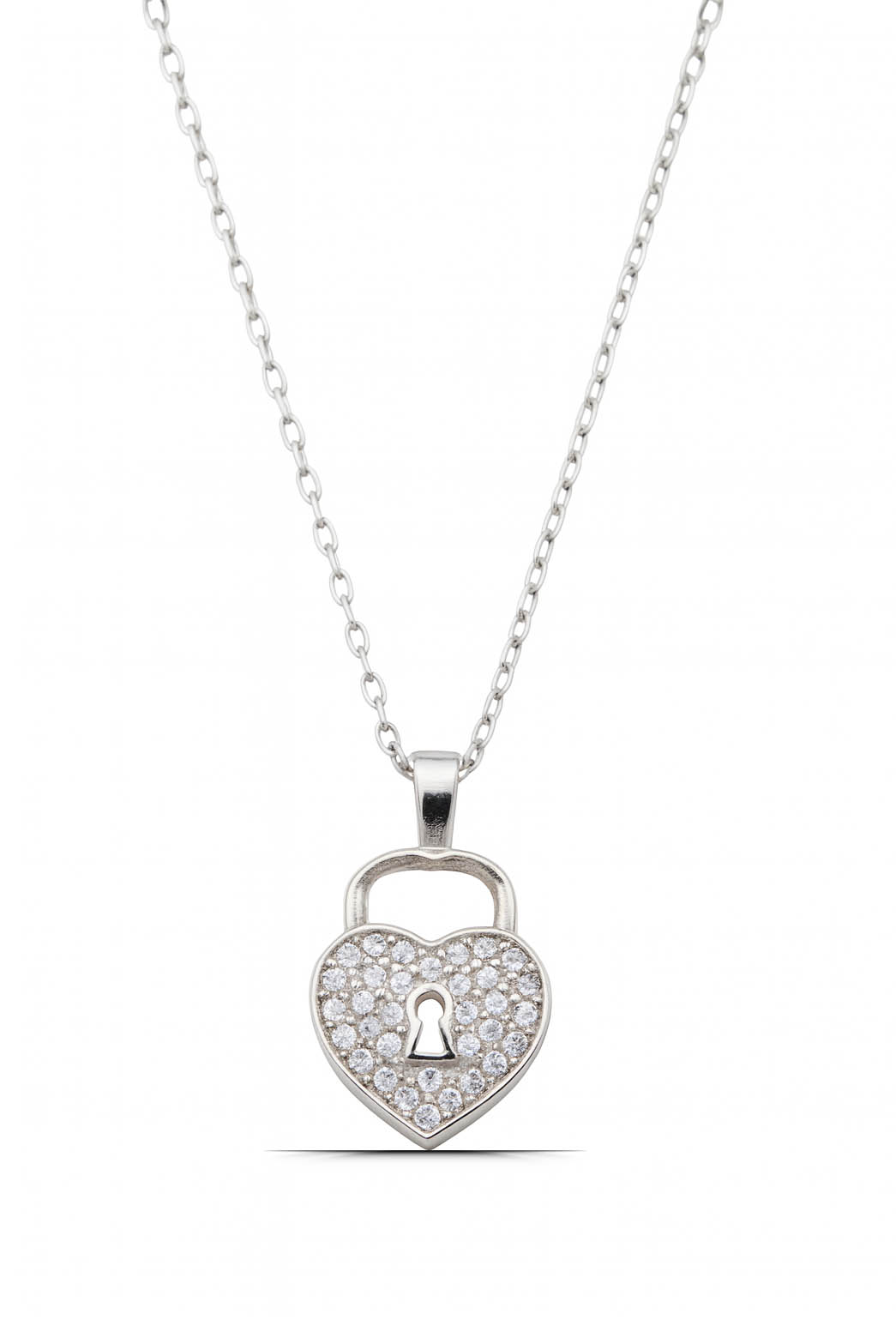 Kalp ve Anahtar Tasarım 925 Ayar Gümüş Kadın Kolye
