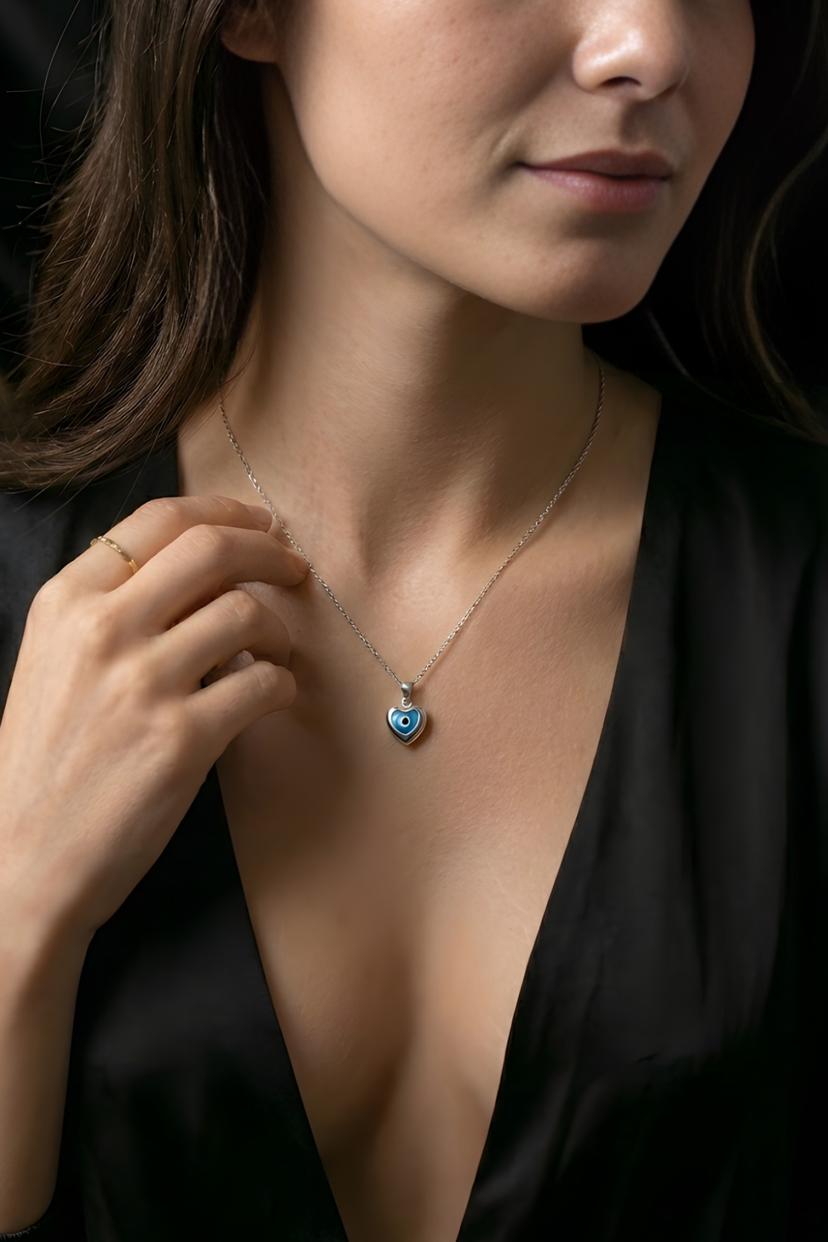 Kalp ve Nazar Temalı 925 Ayar Gümüş Kadın Minimal Kolye