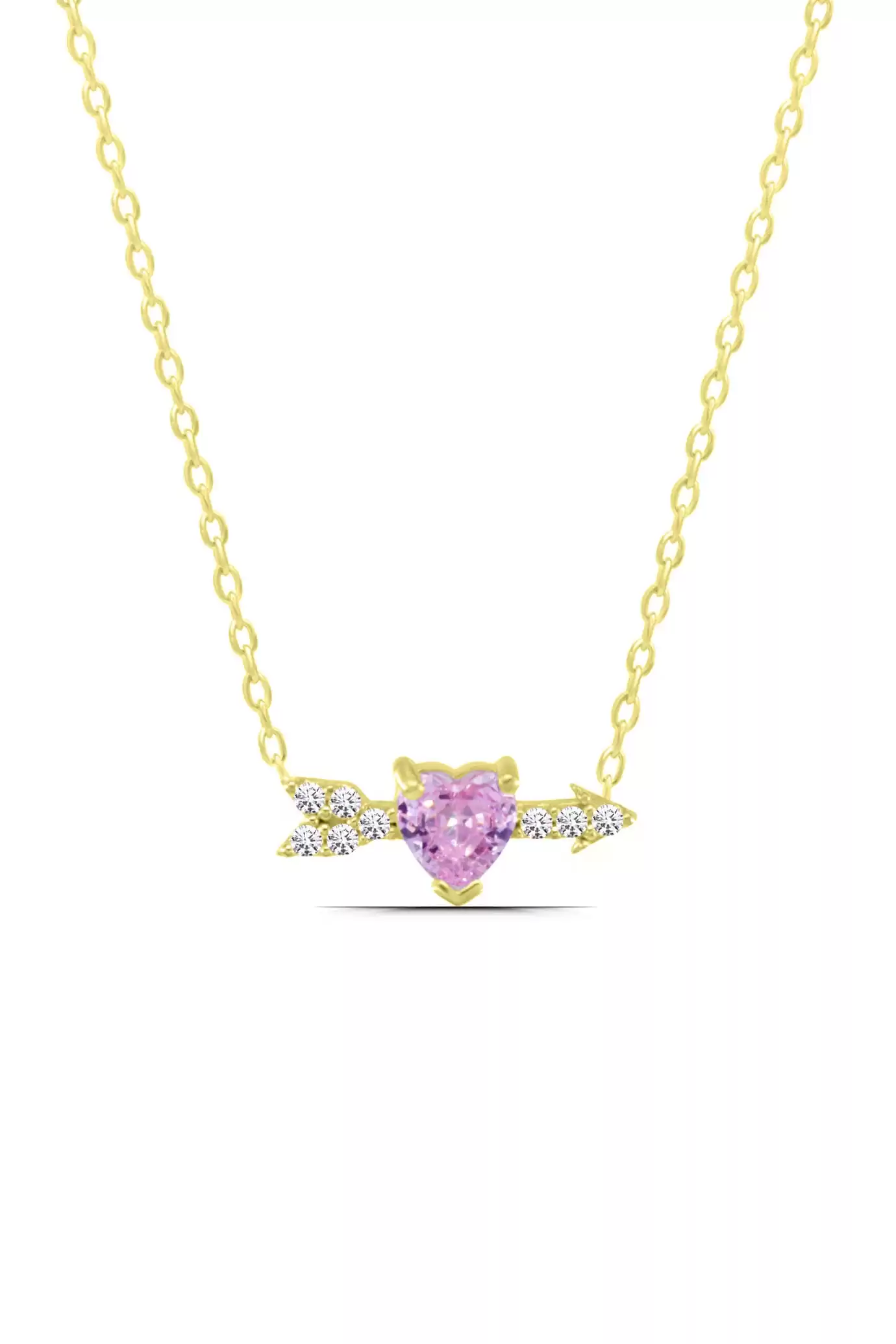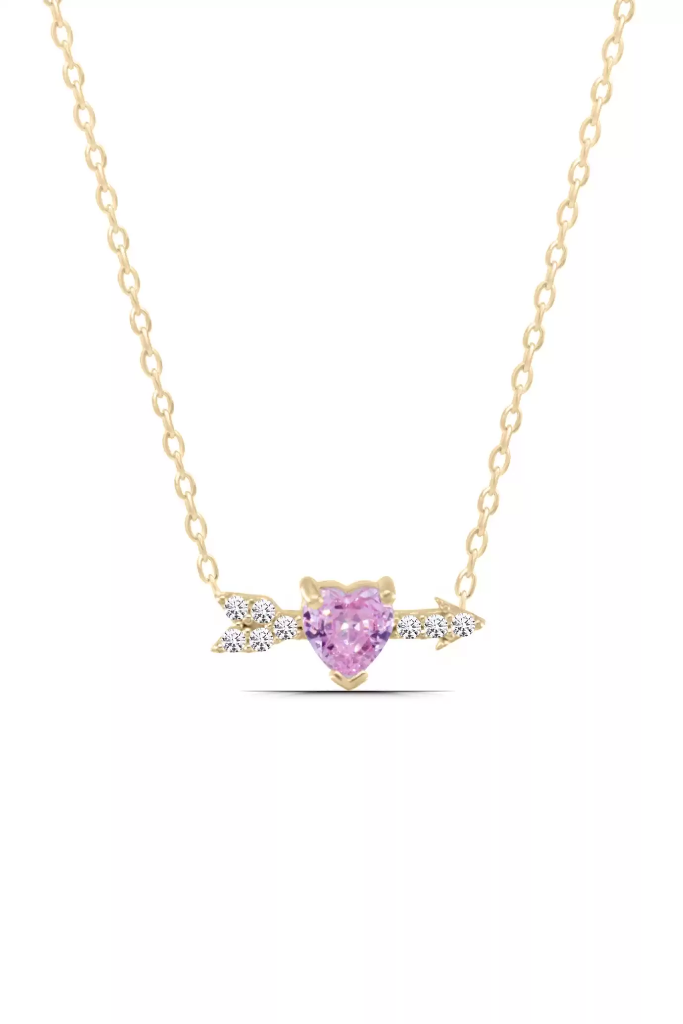 Kalp ve Ok Pembe Taşlı 925 Ayar Gümüş Kadın Minimal Kolye