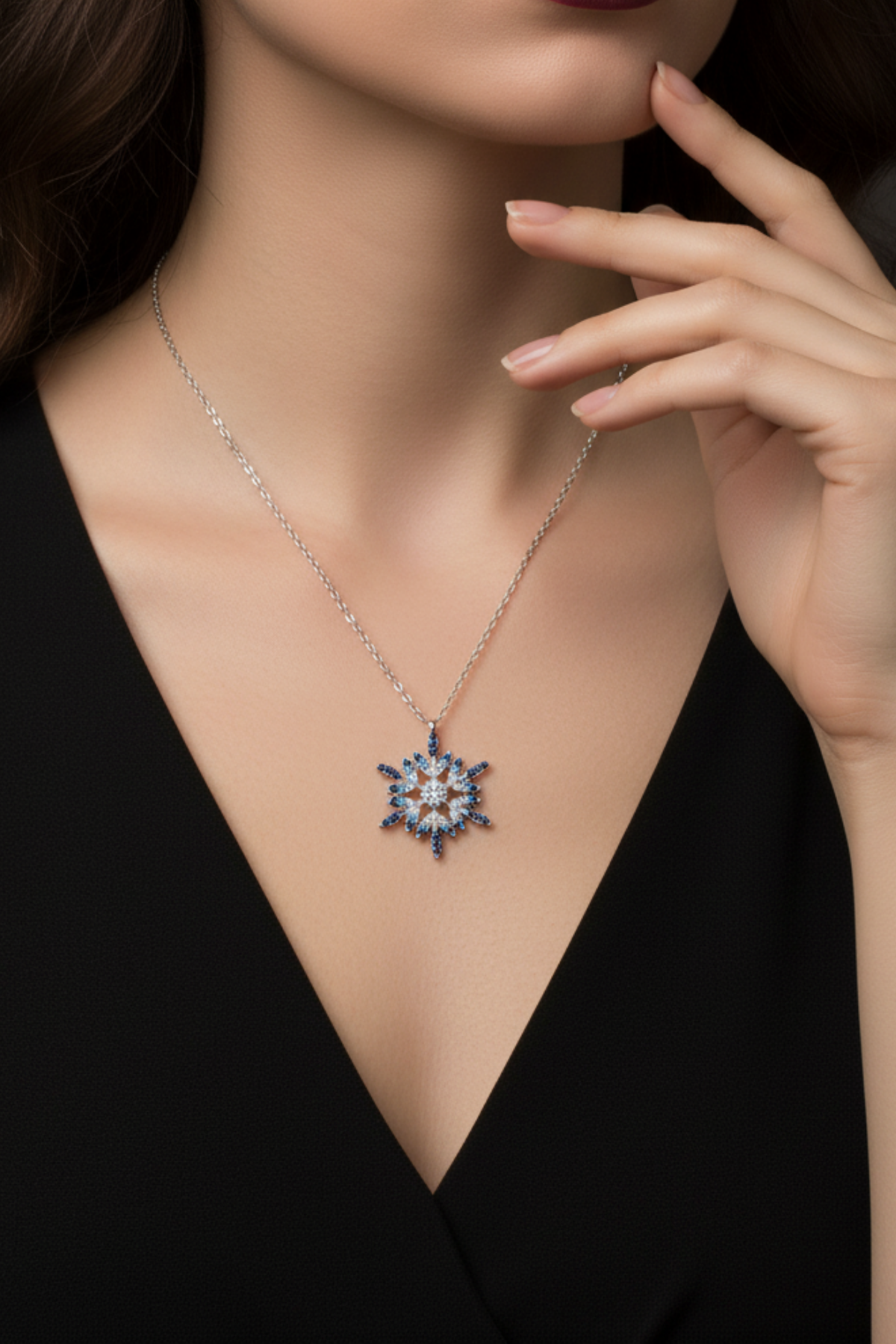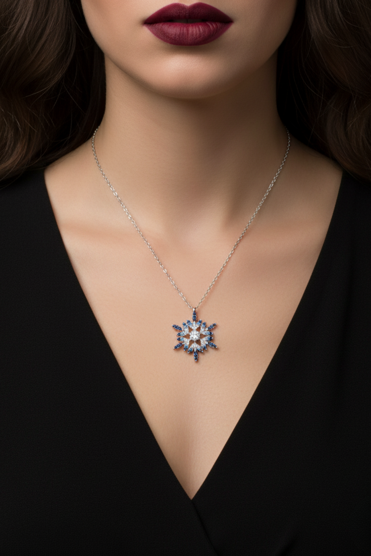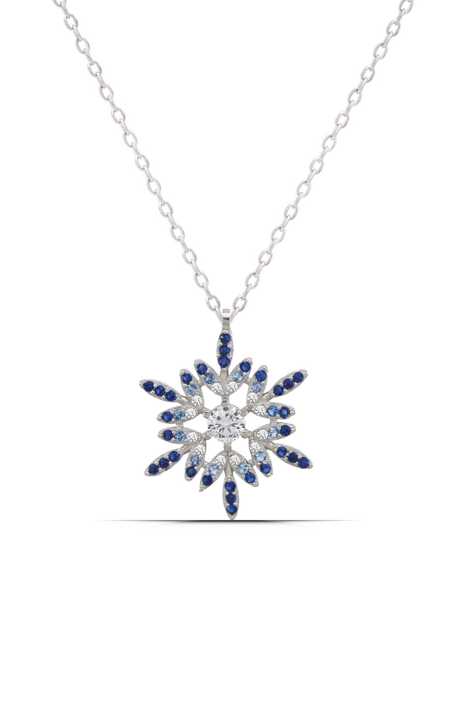 Kar Tanesi Mavi Renk Geçişli Kadın 925 Ayar Gümüş Kolye
