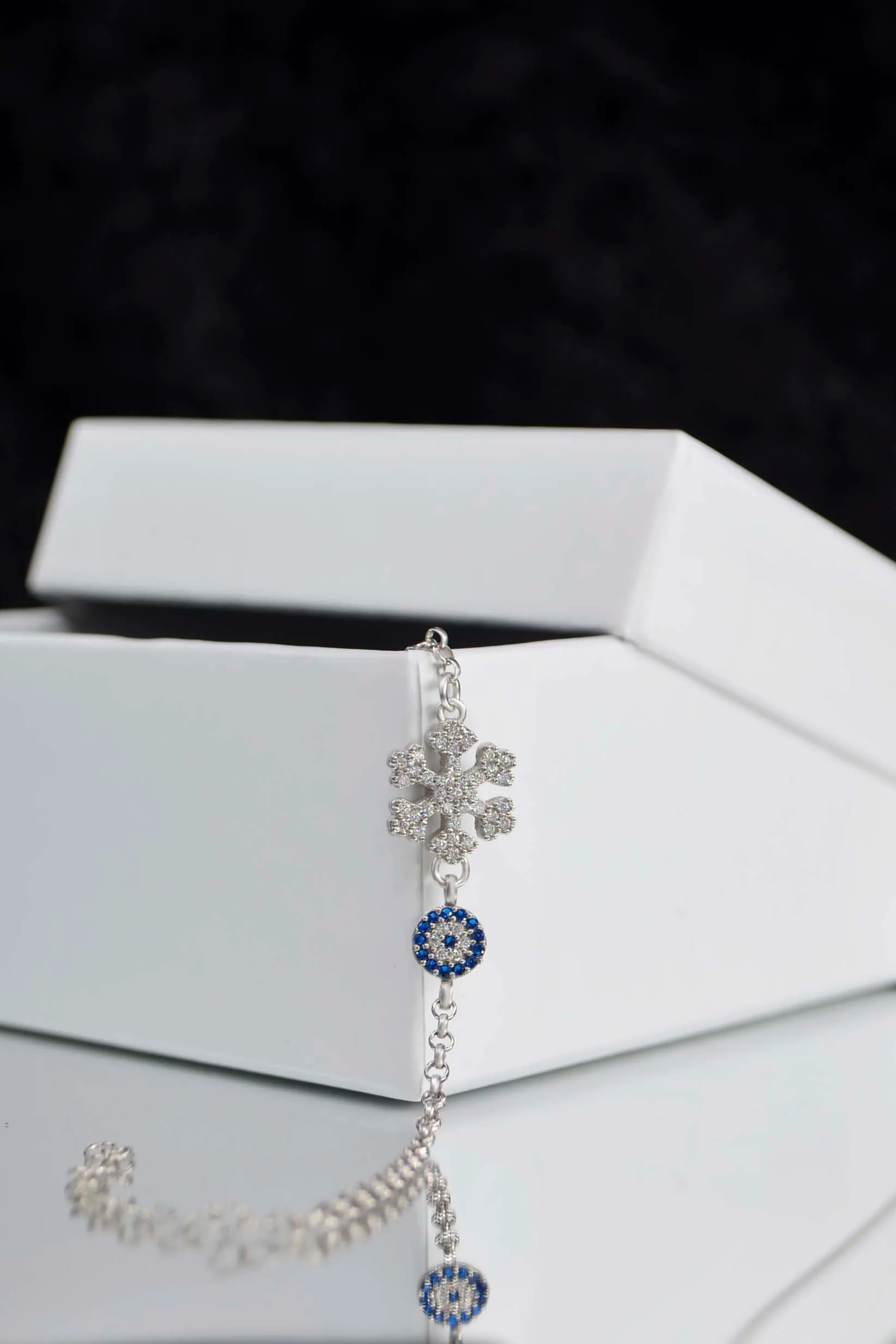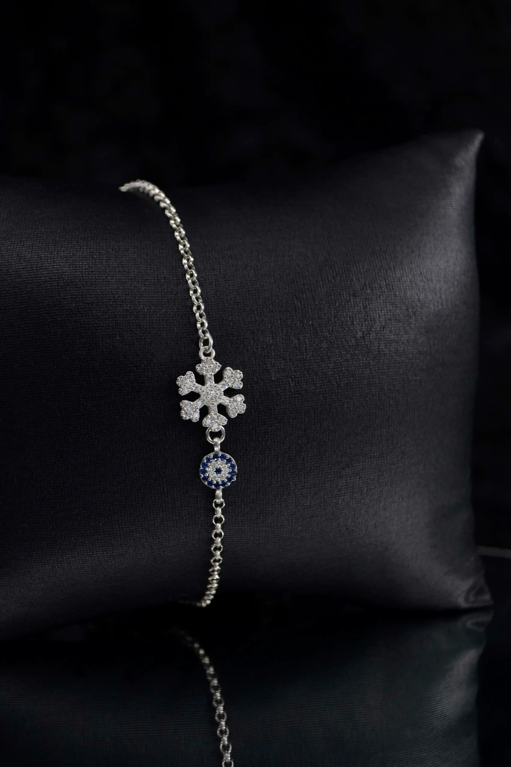 Kar Tanesi Ve Nazar Kadın 925 Ayar Gümüş Kadın Bileklik