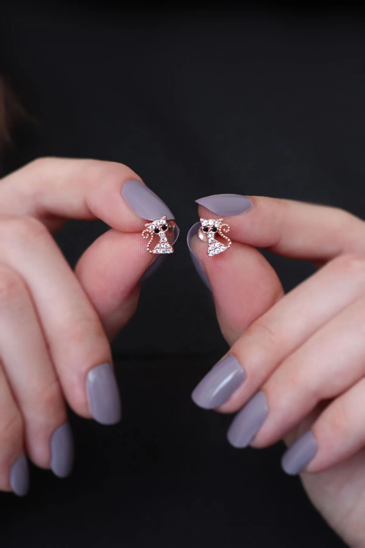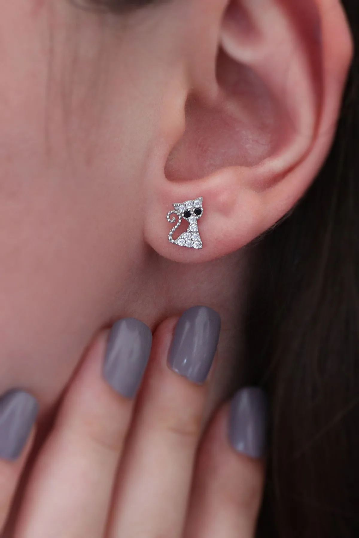 - Kedi Model Kadın Gümüş Küpe