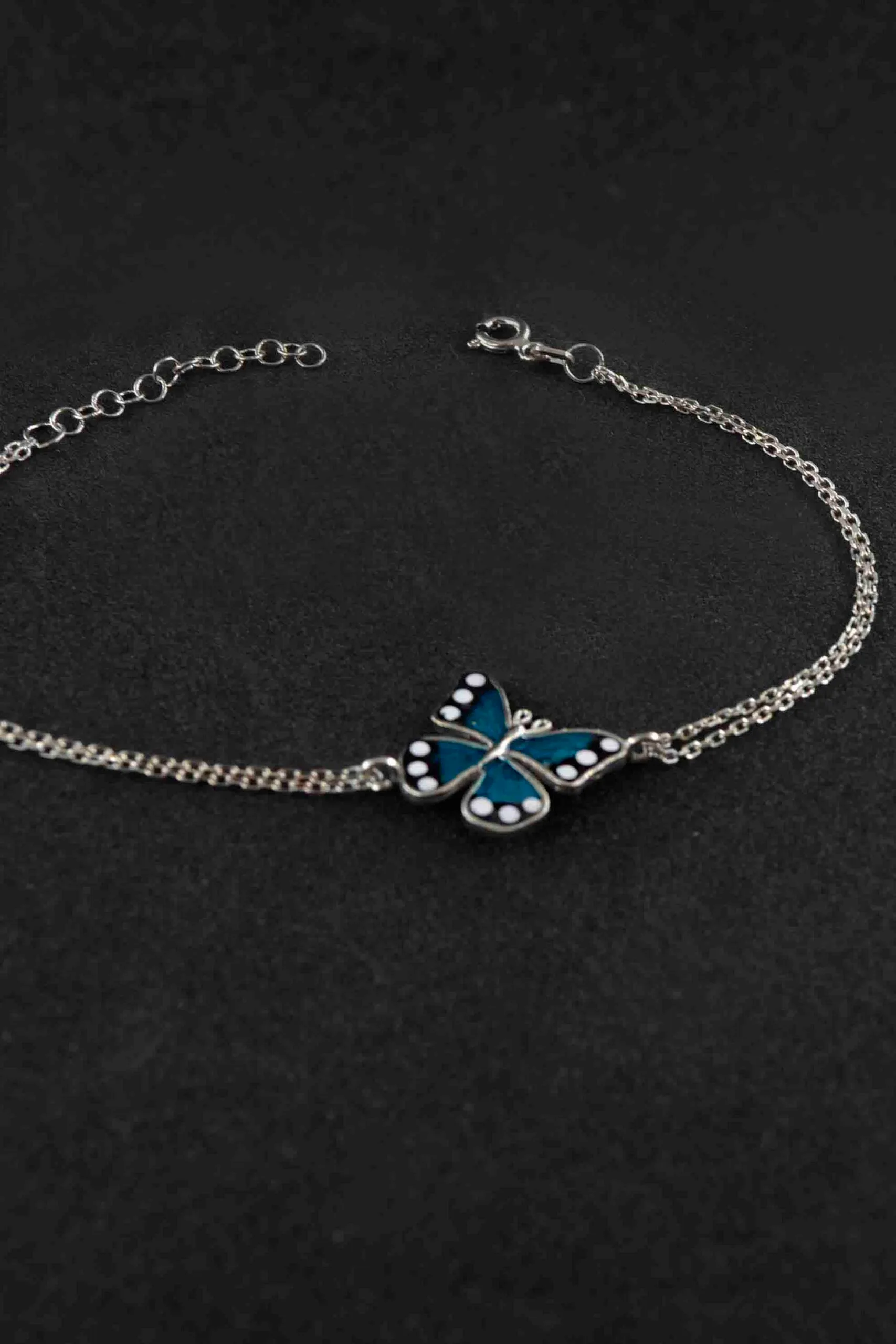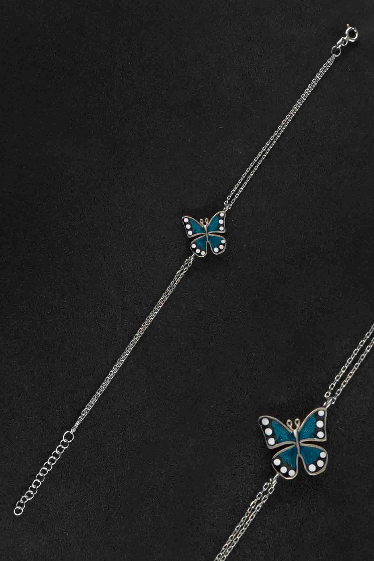 - Kelebek Mavi Mineli 925 Ayar Gümüş Kadın Bileklik