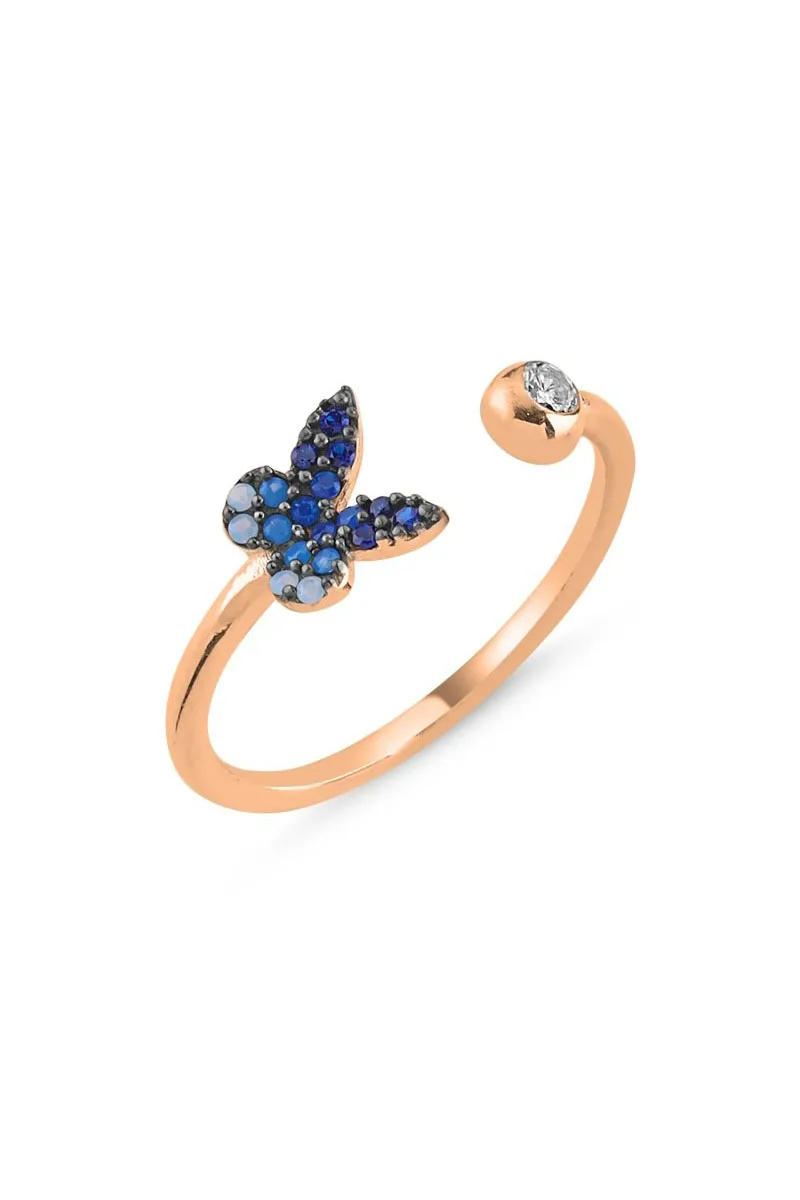 Kelebek Mavi Zirkon Taşlı 925 Ayar Gümüş Ayarlanabilir Yüzük – Özgürlüğün ve Zarafetin Simgesi!