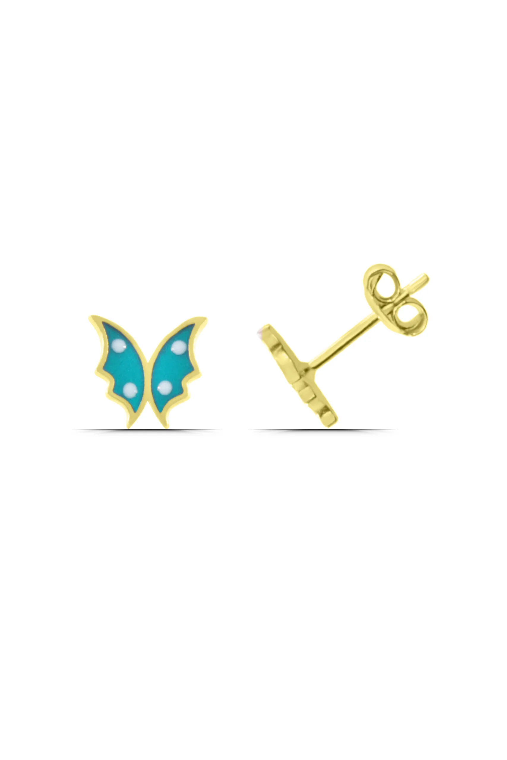 Kelebek Tasarım Mineli 925 Ayar Gümüş Kız Çocuk Küpe