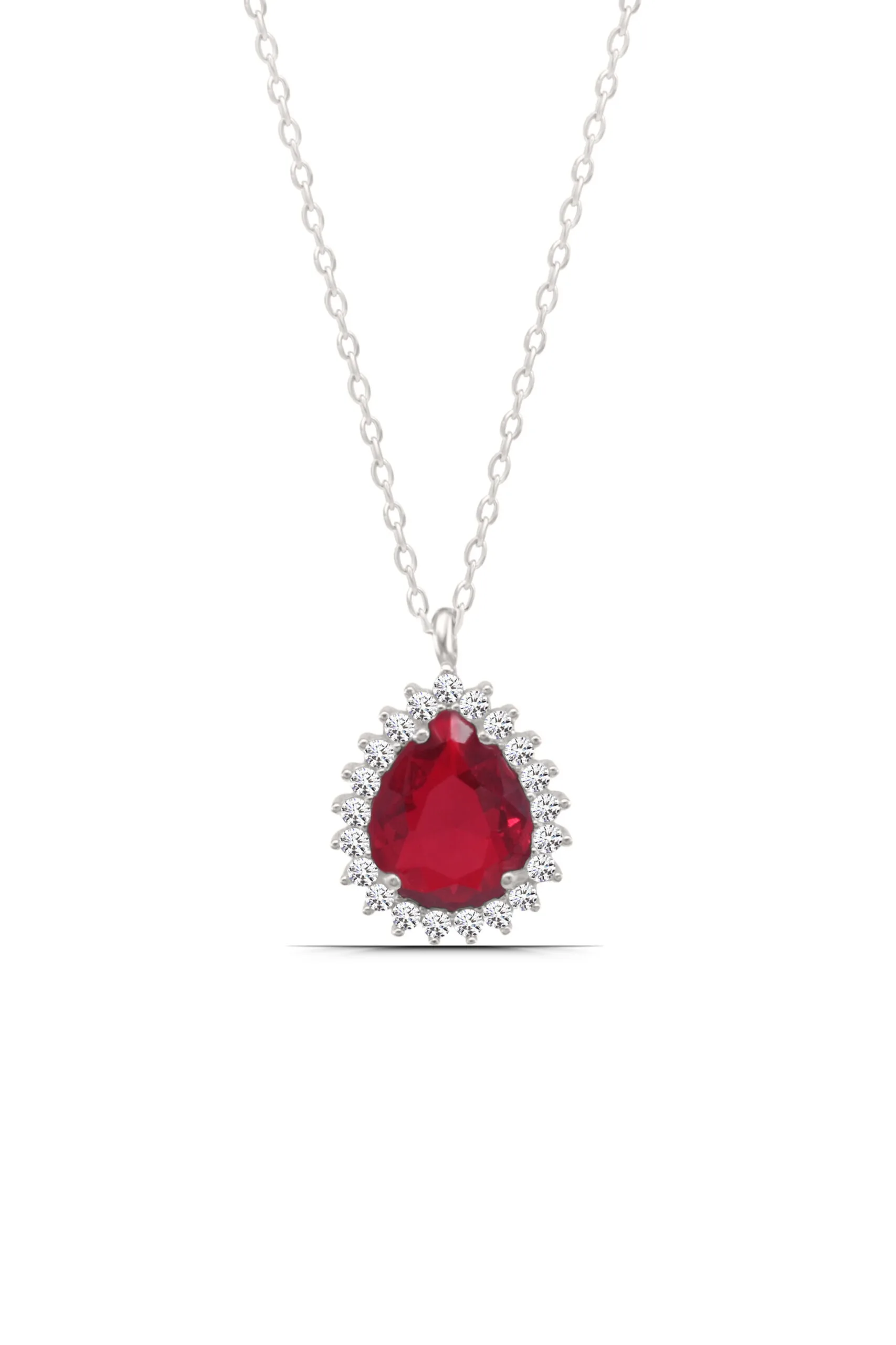 Kırmızı Damla Form 925 Ayar Gümüş Kadın Kolye