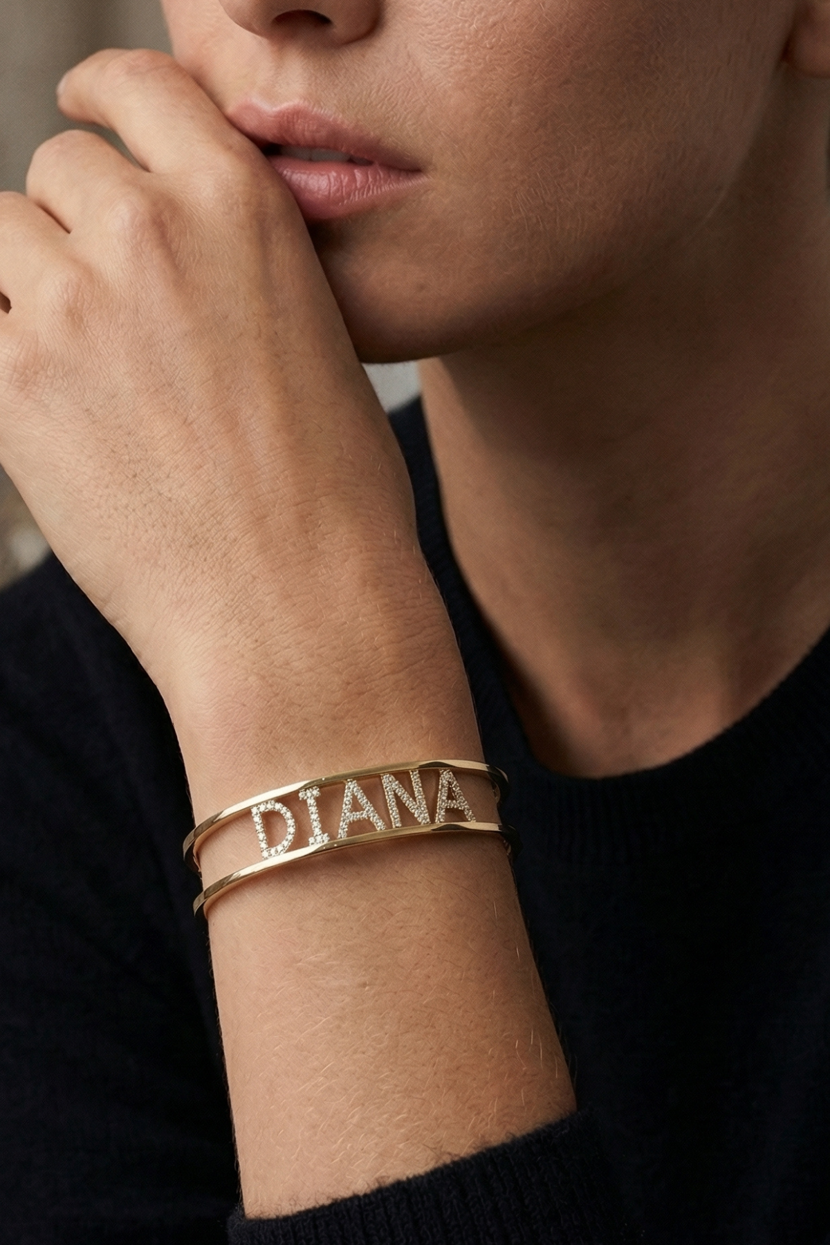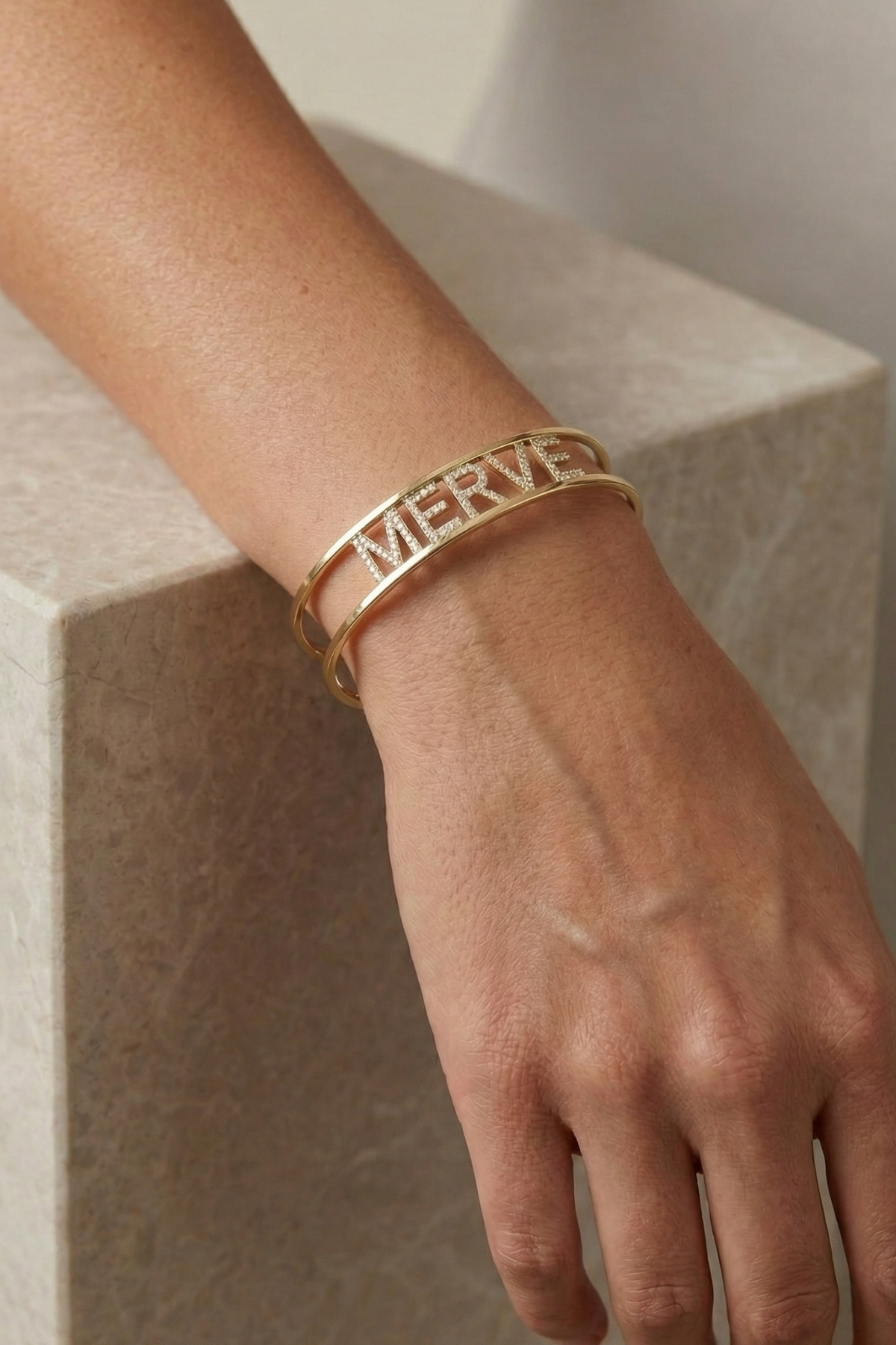 Kişiselleştirilmiş isim detayı bu bilekliği benzersiz ve özel kılar. İster kendi adınızı, ister sevdiğiniz birinin adını, ister anlamlı bir kelime seçin; bu tasarım takıdan daha fazlasına dönüşür ve her kullanımda duygusal bir değer taşır.