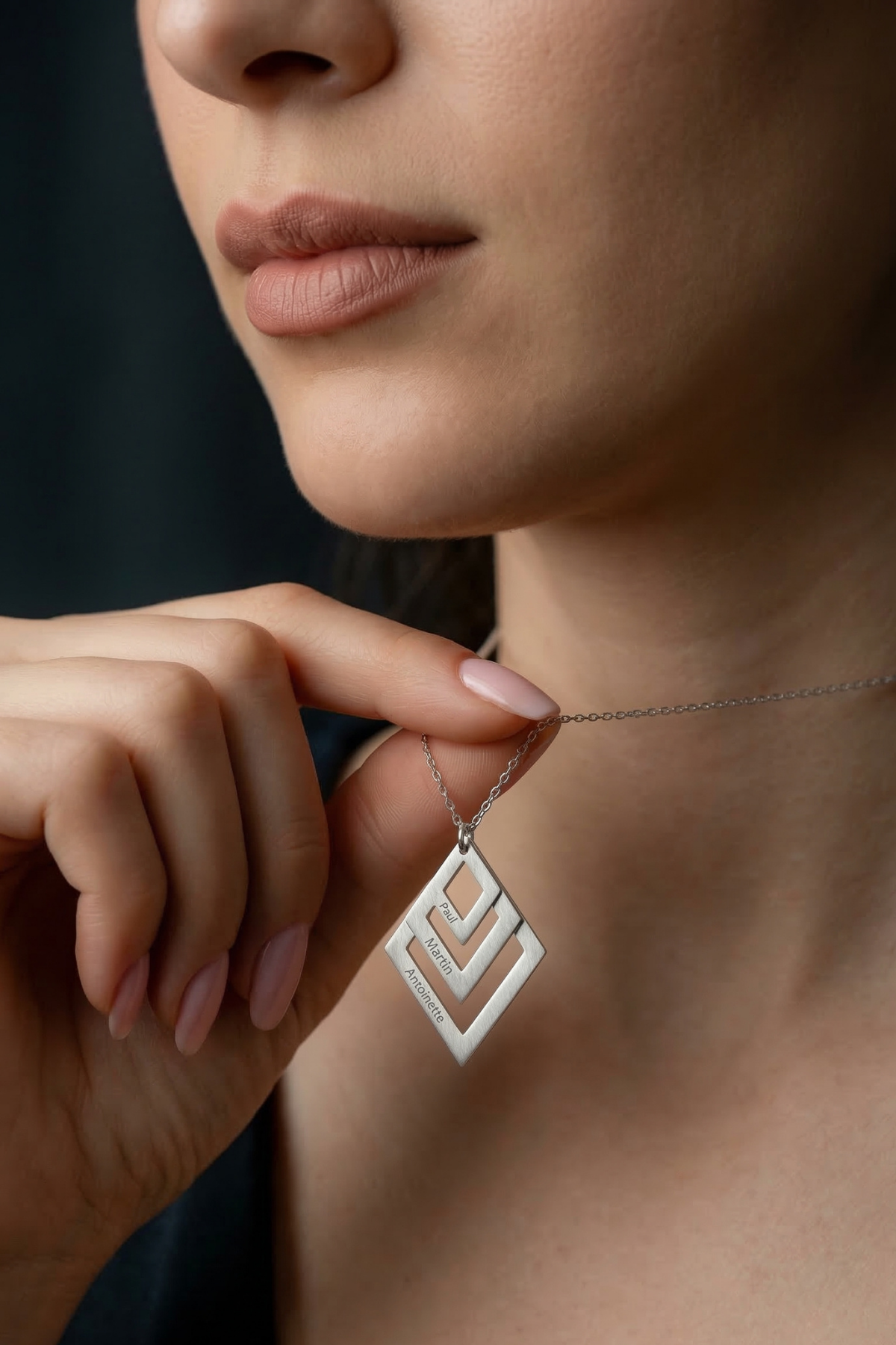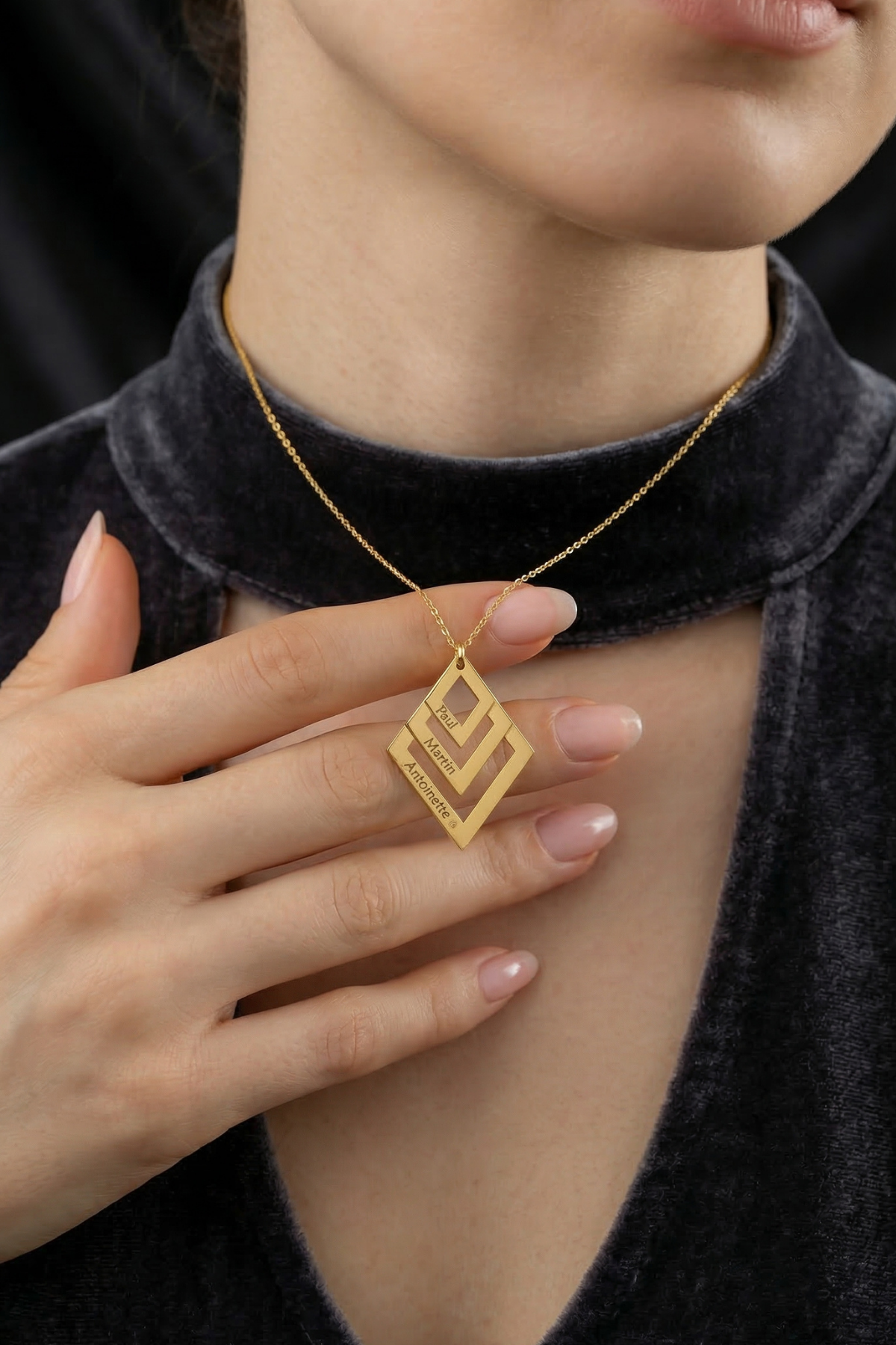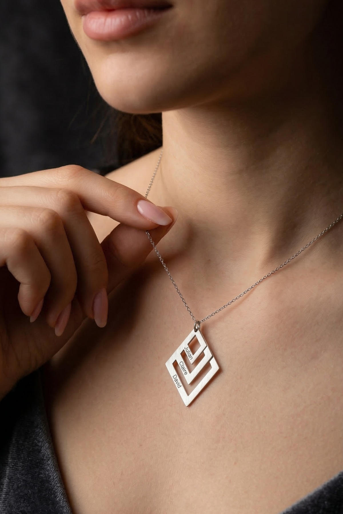 Bu kişiye özel katmanlı isimli kolye, zarafeti kişisel anlamla birleştirmek isteyenler için tasarlanmıştır. 925 ayar gümüşten üretilen bu geometrik kolye, çoklu isimleri şık ve katmanlı kare tasarımda bir araya getirerek benzersiz ve dikkat çekici bir görünüm sunar. İster aile isimleri, ister çocuk isimleri, ister anlamlı kelimeler seçin; bu kişiselleştirilmiş kolye onları zamansız bir aksesuara dönüştürür. Günlük kullanım için ideal olduğu gibi, düşünceli bir hediye olarak da modern ve duygusal bir dokunuş sunar.