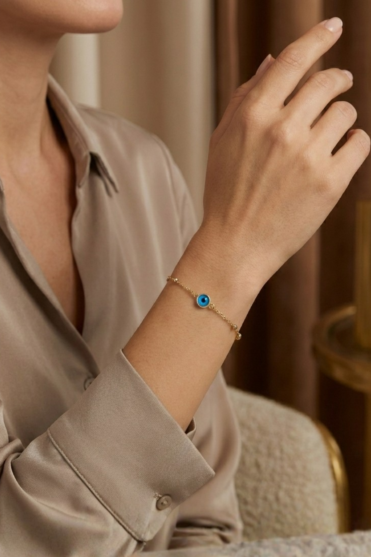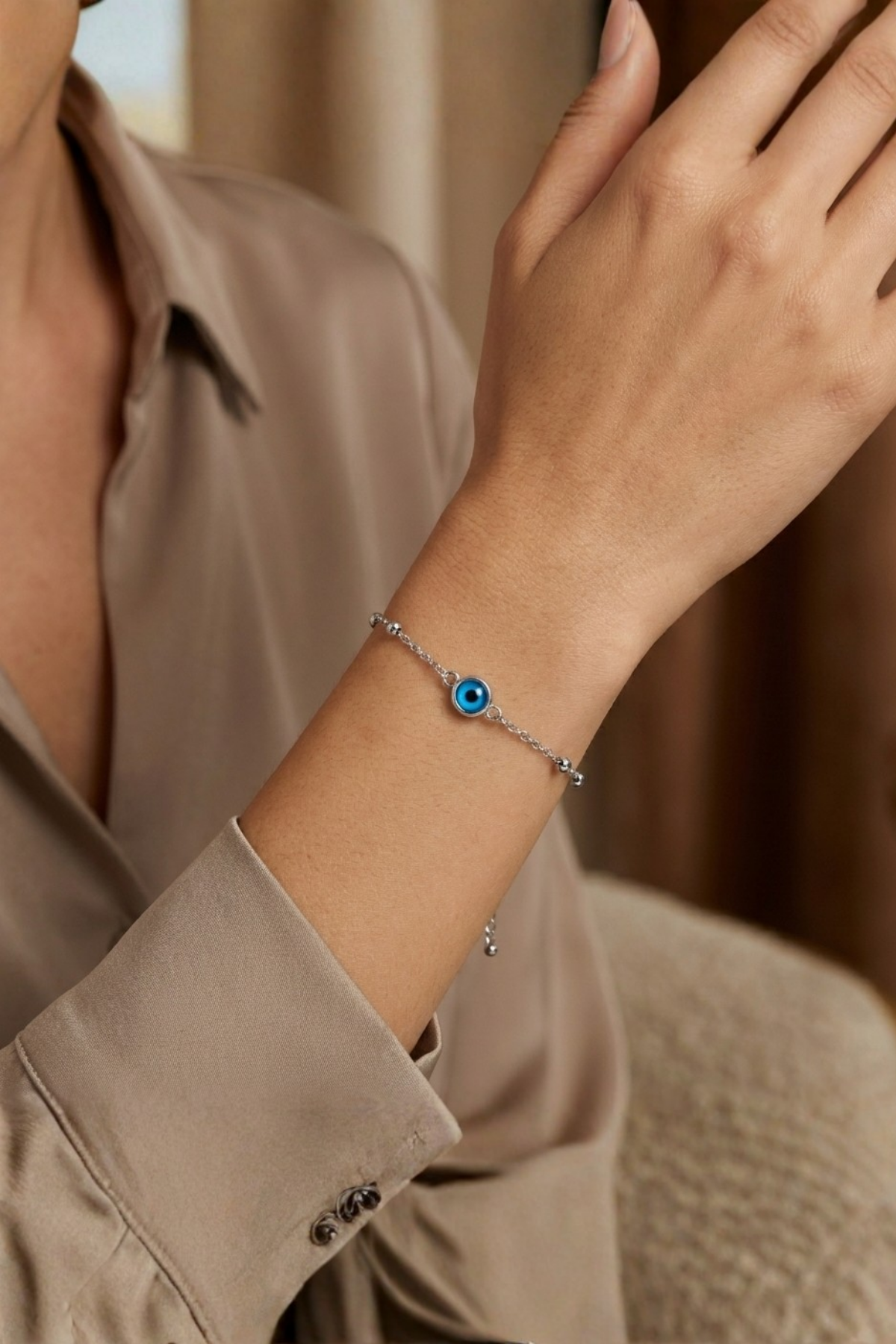 Modern zarafet ile geleneksel sembollerin gücünü bir araya getiren Koruyucu Mavi Nazar 925 Ayar Gümüş Kadın Ayarlanabilir Bileklik, hem estetik görünümü hem de anlamlı yapısıyla günlük stilin en özel tamamlayıcısıdır. Minimal yuvarlak formda tasarlanan mavi nazar motifi, bilekte sade ama güçlü bir vurgu yaratır. Parlak ve canlı mavi tonu, enerjiyi dengeleyen ve kötü bakışlara karşı koruyucu bir sembol olarak yüzyıllardır tercih edilen bir anlam taşır.