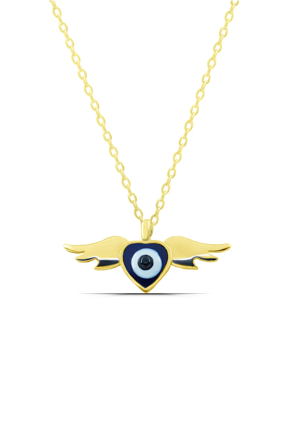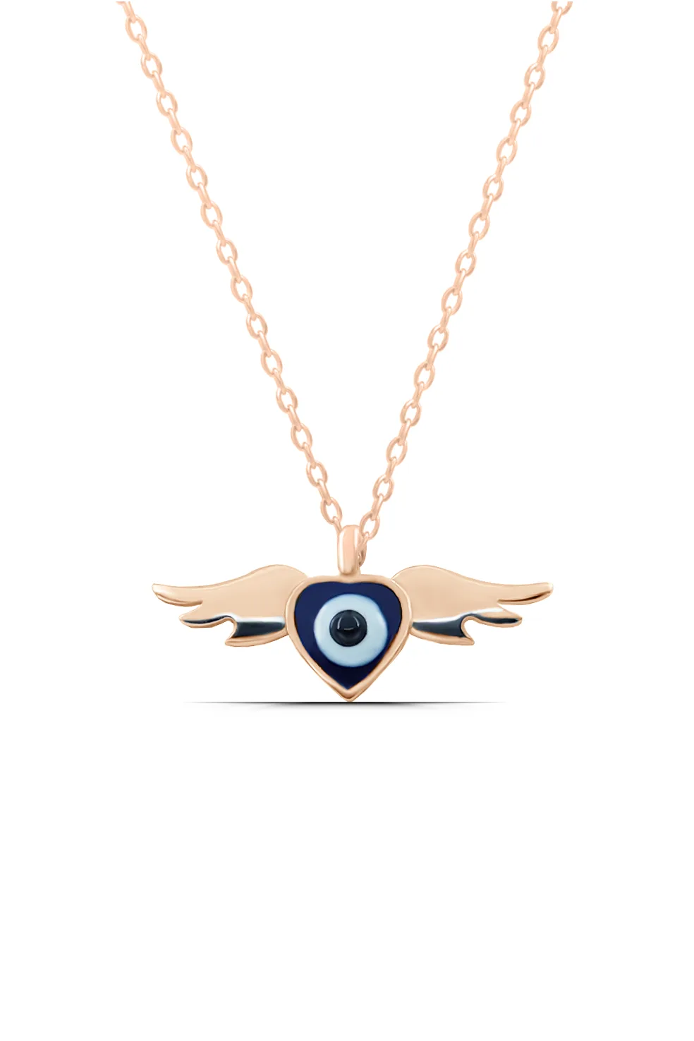 Lacivert Nazar Boncuklu Kanat Tasarım 925 Ayar Gümüş Kadın Kolye